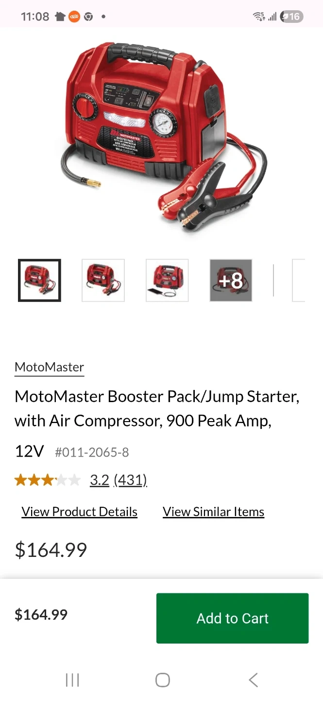 Booster cables w air compressor, charger. $100