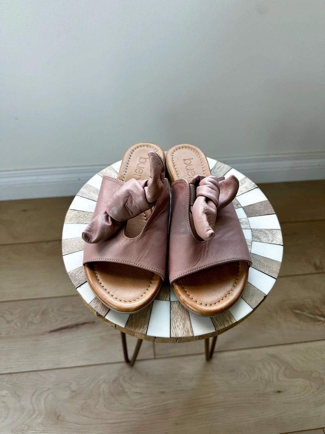 These are a pair of Bueno sandals in a lovely mauve/pink colour. They feature a stylish knot detail