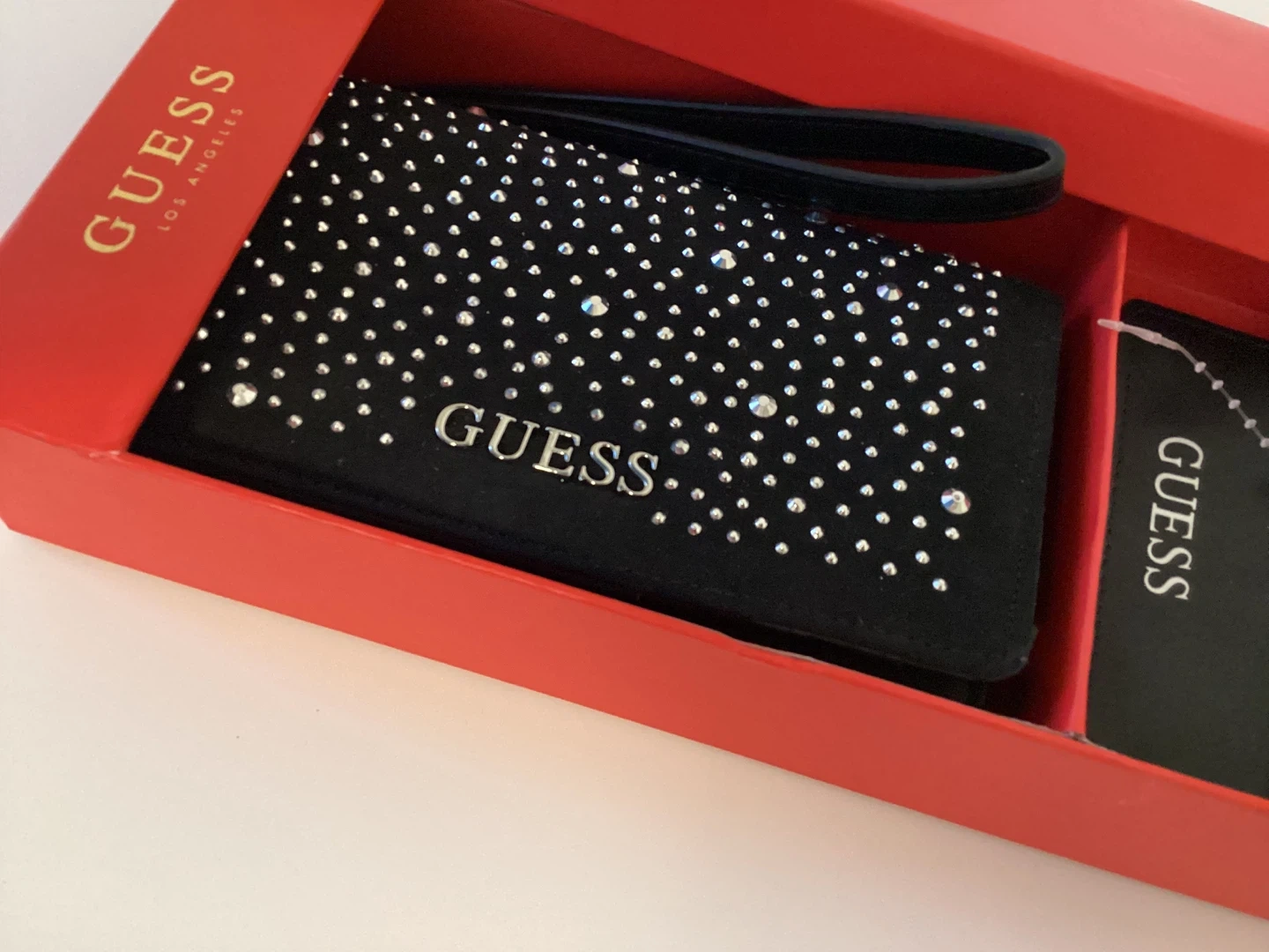 This Guess wallet set comes in black and includes a studded wallet with a wrist strap and a cardholder. Original price was $100