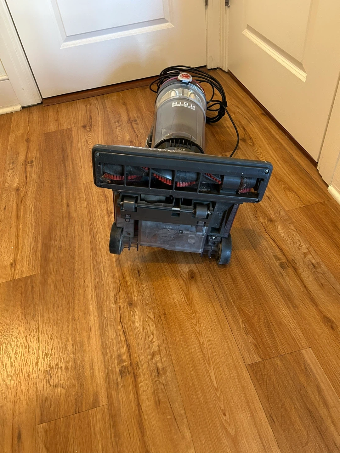 This is a red Hoover UH72600 Teenager Series bagless upright vacuum cleaner. It's designed for household use. It operates at 120V, 60Hz, 12.0A.