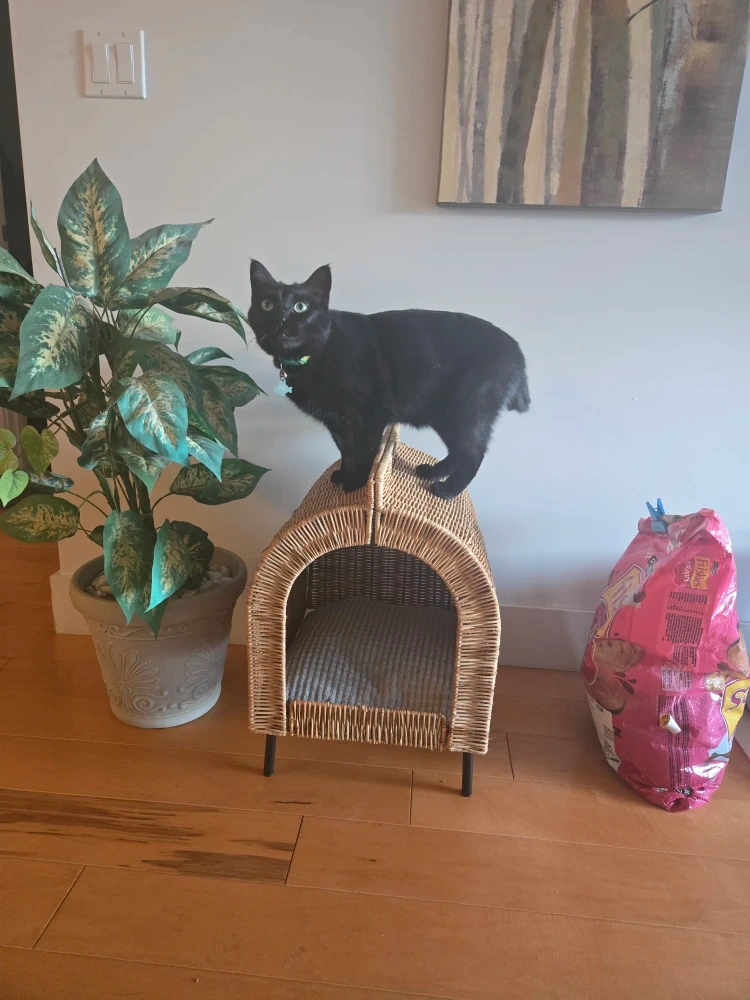 153Selling a cute wicker cat house! It's in great shape and provides a cozy little hideaway for your feline friend. The interior has a comfy striped cushion for extra comfort