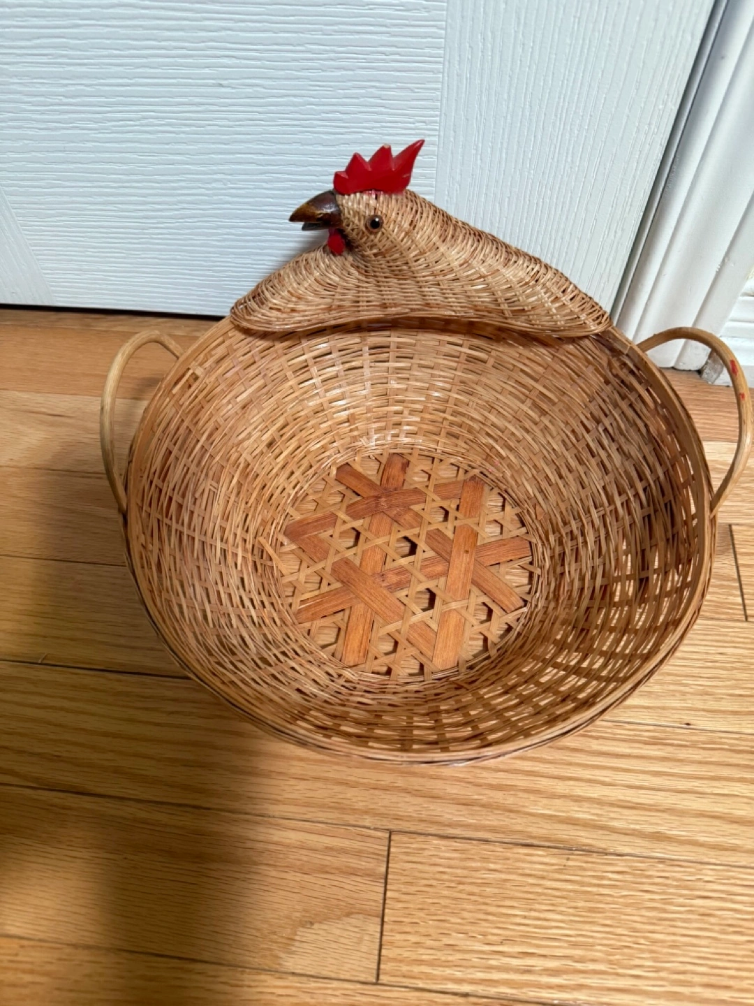 194Selling a cute wicker basket shaped like a chicken! It's in great condition and would be perfect for storage or decoration in your home