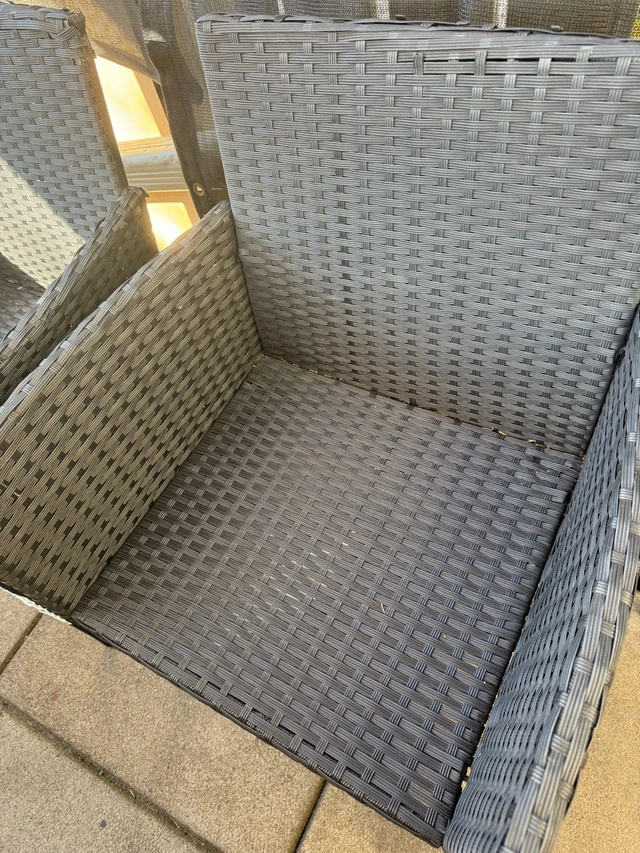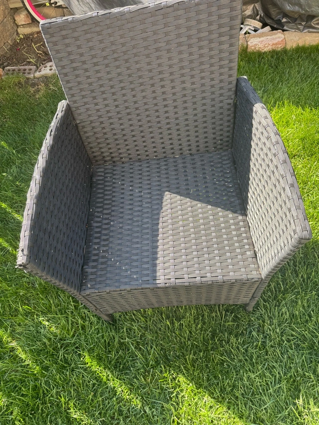 82Add a touch of style to your outdoor space with this pre-owned wicker patio chair. While it's not brand new, it still has plenty of life left and is perfect for relaxing on your patio or deck. 3 chairs Looking to add a quirky piece to your patio setup? This chair is waiting for a new home! Remember, if the ad is up, it's still available!