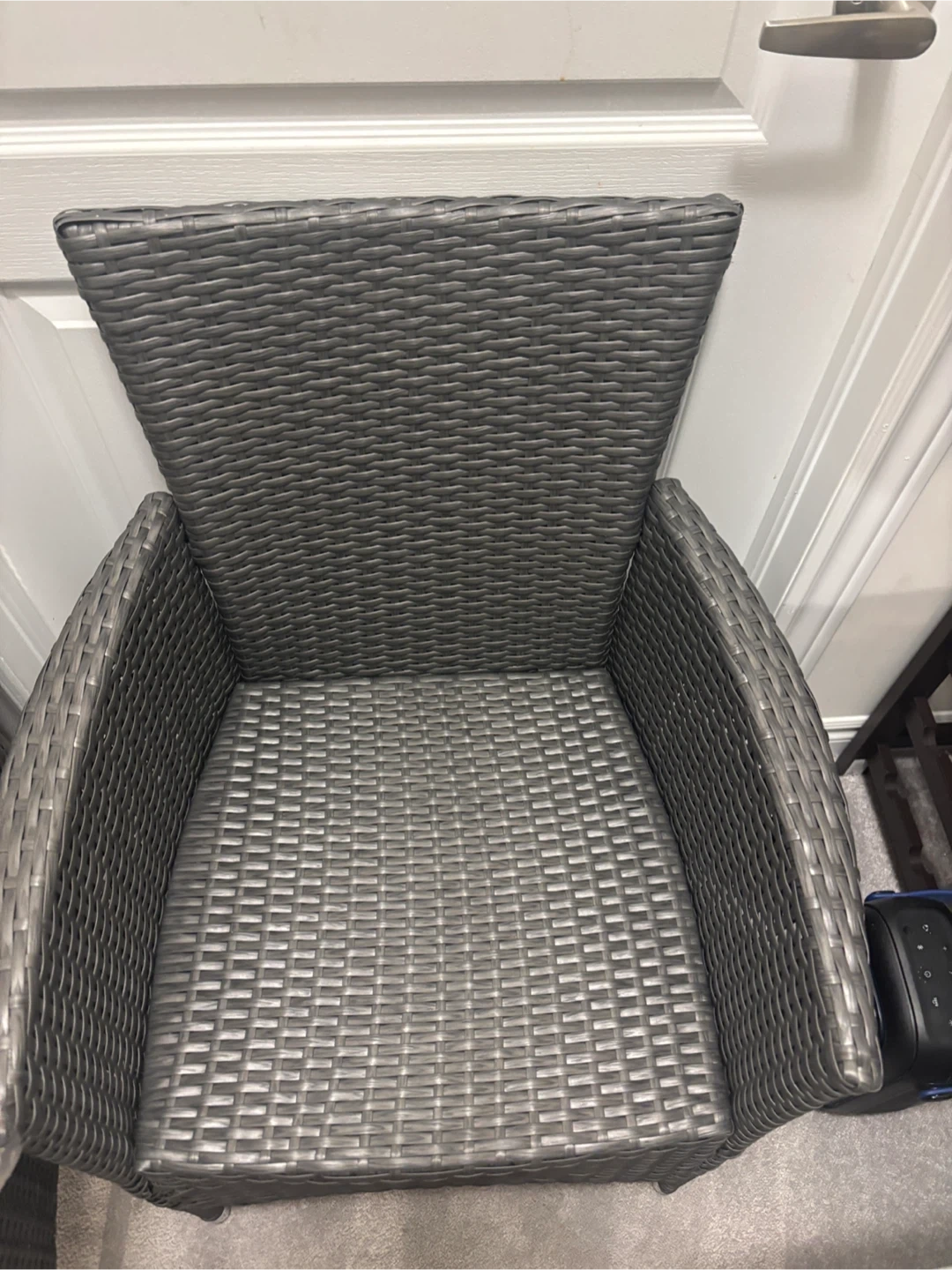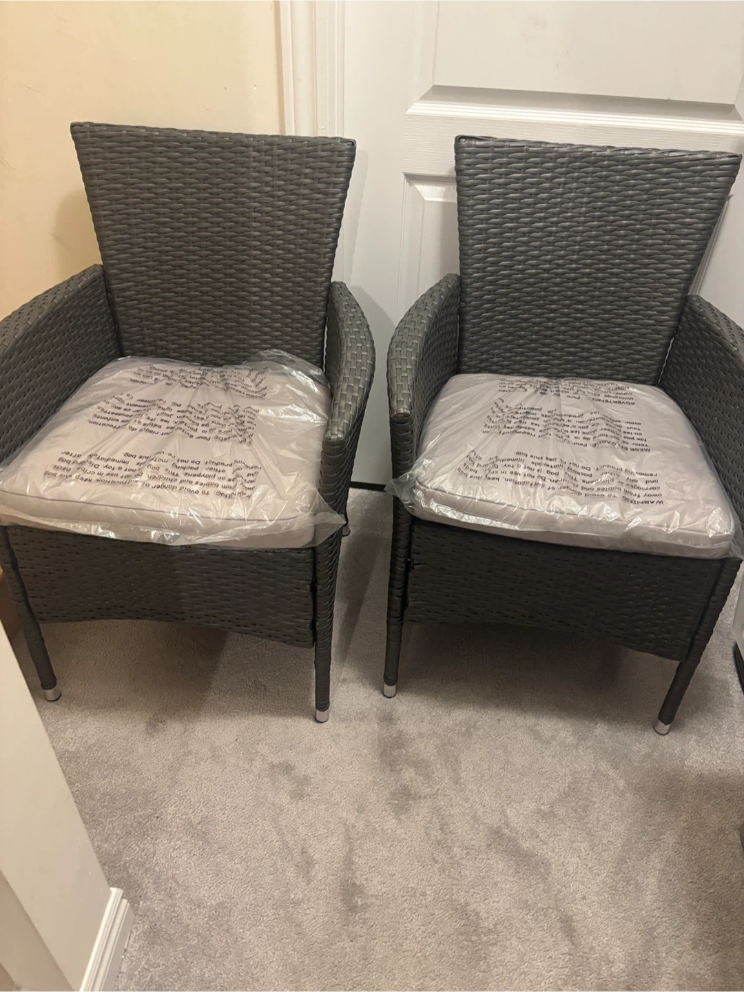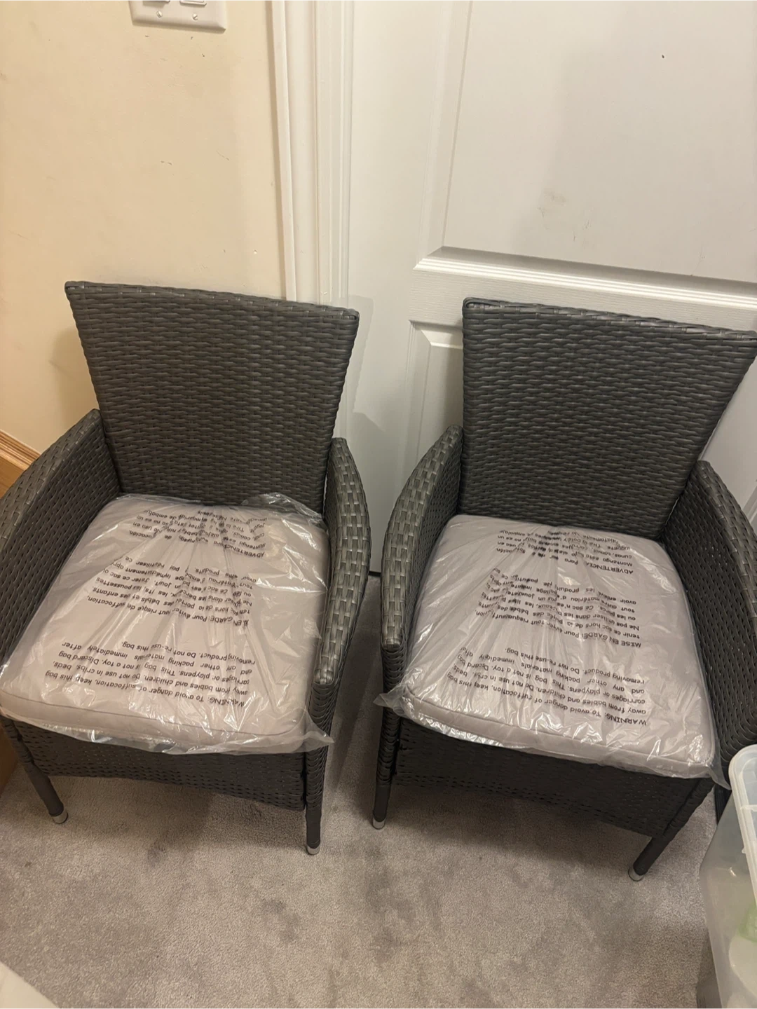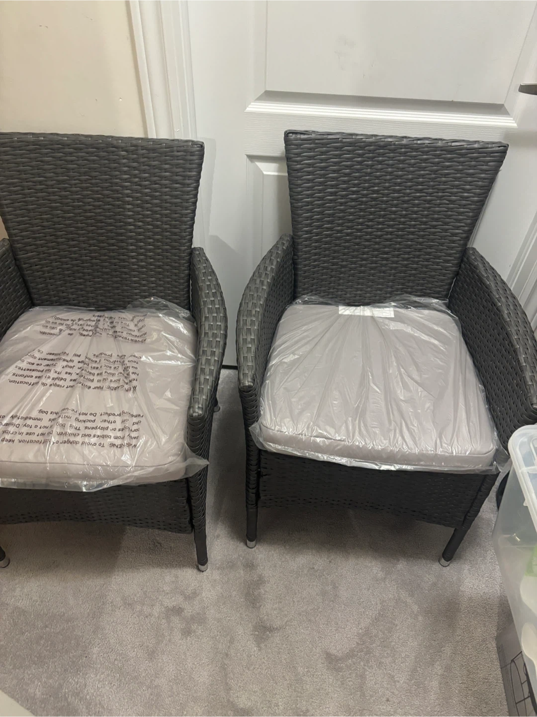 Selling a set of two wicker patio chairs. Amazing for your outdoor space. Perfect for relaxing on the deck or enjoying a cup of coffee in the garden. Available for pickup and delivery