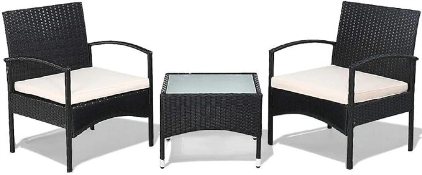 Selling a lovely wicker patio set! It includes two comfortable chairs and a small table, perfect for enjoying your outdoor space. The set is in great condition and ready for a new home. The cushions are a neutral colour that will match any decor