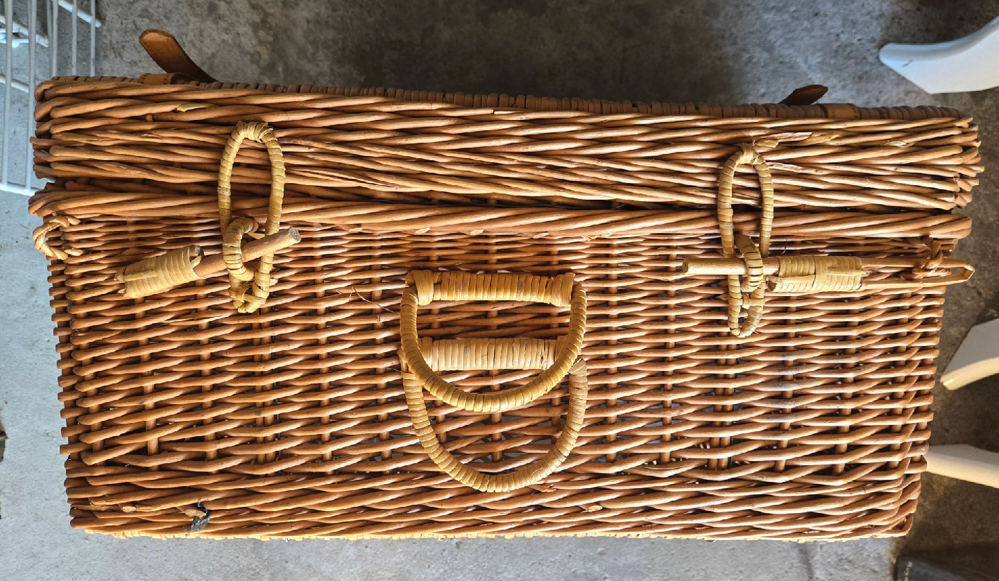 Selling a charming wicker picnic basket, perfect for outdoor dining! It comes with a set of colourful dishes and cups. The basket is in good condition and ready for your next picnic adventure.