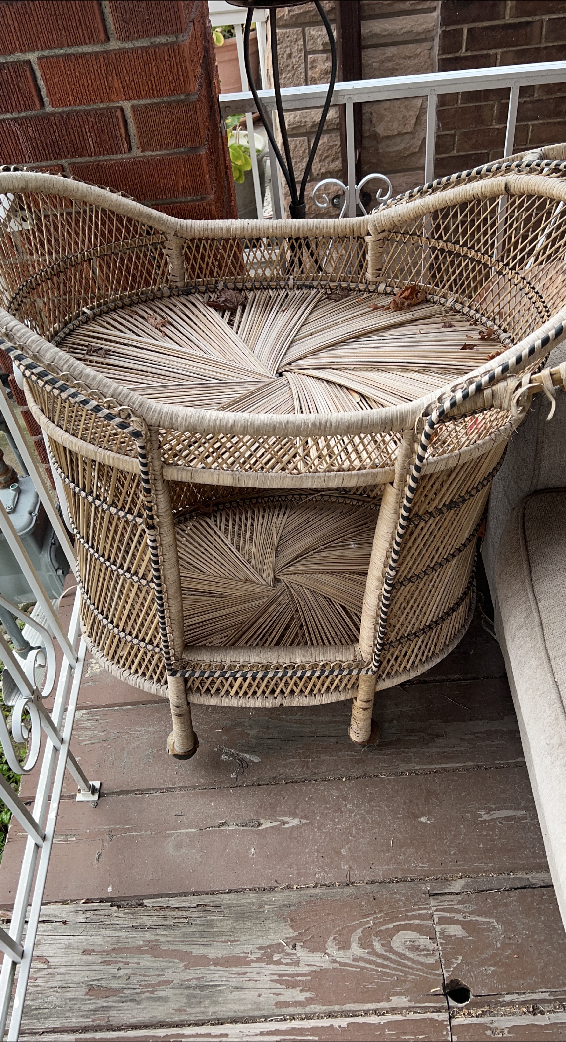 **pick up only *** priced to reflect condition/to go Selling a charming wicker plant stand table. It has a unique woven design and a sturdy build. Perfect for adding a touch of natural elegance to your home or balcony!
