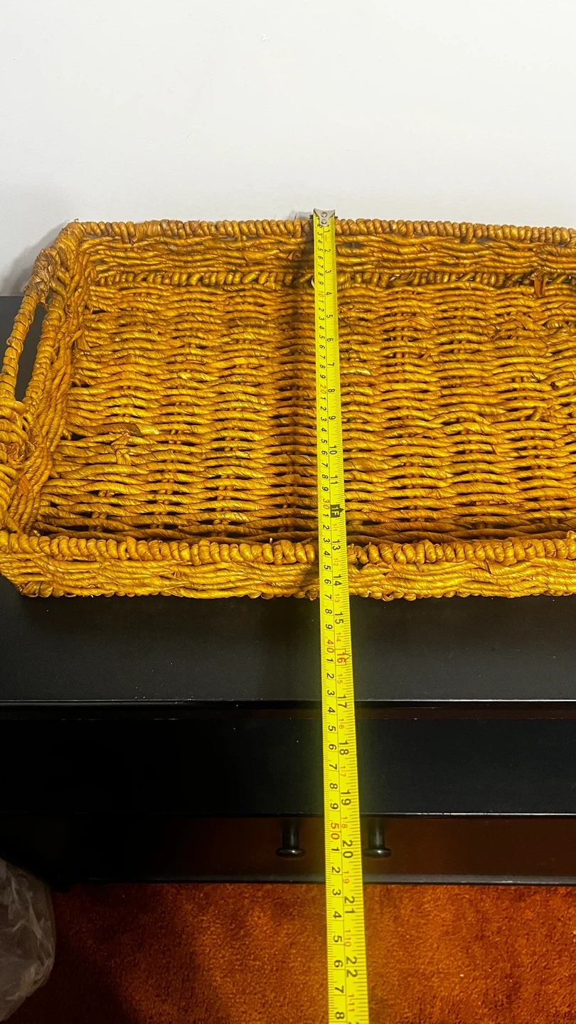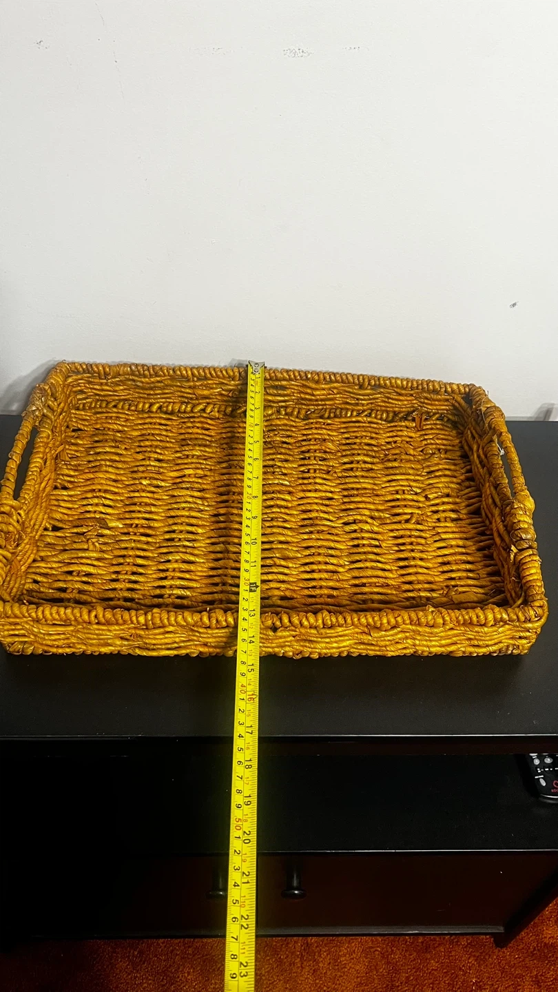 10Selling a wicker serving tray in good condition. It measures approximately 19 inches in length and 13 inches in width. Perfect for serving snacks or displaying items!