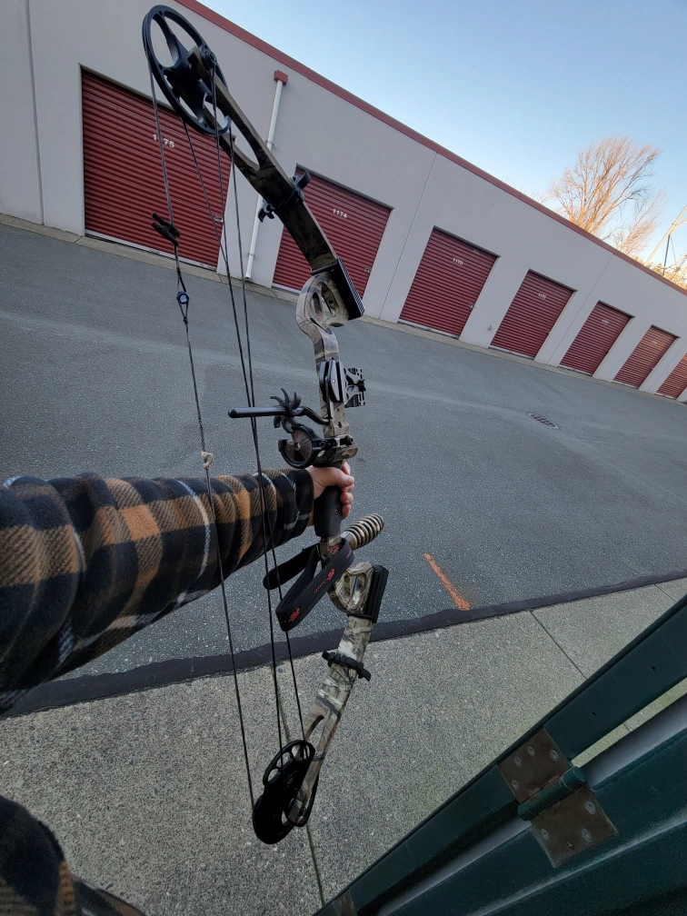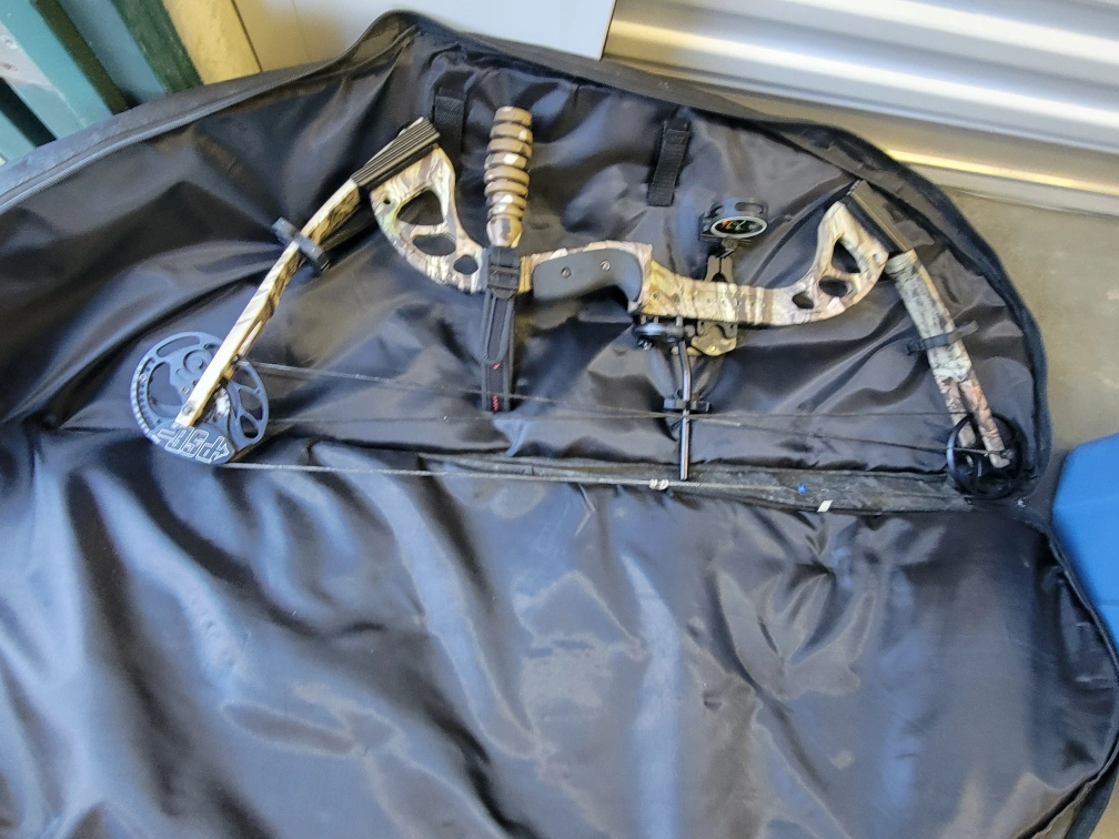 Selling a compound bow, perfect for target practice or hunting. It comes with a carrying case for easy transport and storage. Also included are a few arrows. Great condition and well-maintained. Comes with a scope and rubberized grip easier aiming.