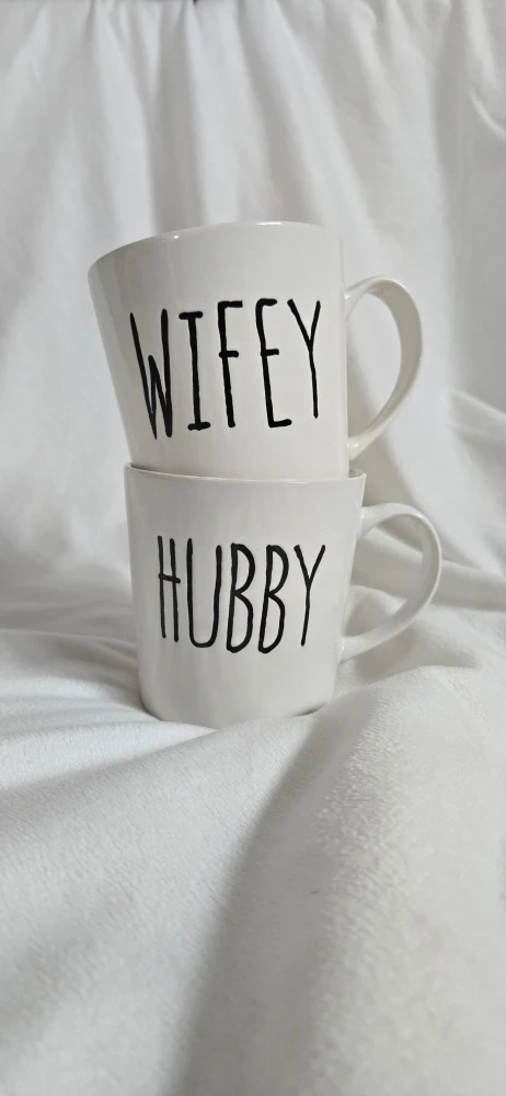 65Selling a set of mugs, one says 'Wifey' and the other says 'Hubby'! These are in excellent condition and would make a lovely gift for a couple!