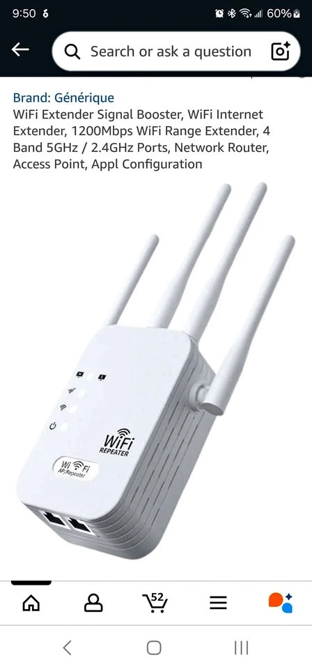 Open box. Amazon return Stable signal performance: Provide a full Wi-Fi signal without interruption, provide a stable and transparent wireless network experience with excellent wall penetration capacity Dual-band high-band spee: stream HD videos, play games and make video calls effortlessly with this Wi-Fi extender's advanced dual-band technology, which offers a maximum speed of 1200 Mbps to meet all your network's demands Versatile: Integrates seamlessly with smartphones, tablets, laptops and smart TVs, provides full compatibility with a wide range of operating systems and devices for easy connections across all platforms Perfect Durability: With advanced workmanship and high-quality materials, this Wi-Fi extender provides stable performance and provides strong signals for great connectivity wherever you are Efficient cooling power: The integrated intelligent cooling system effectively extends the service life and eliminates worries about device overheating and consistent Wi-Fi signal insurance