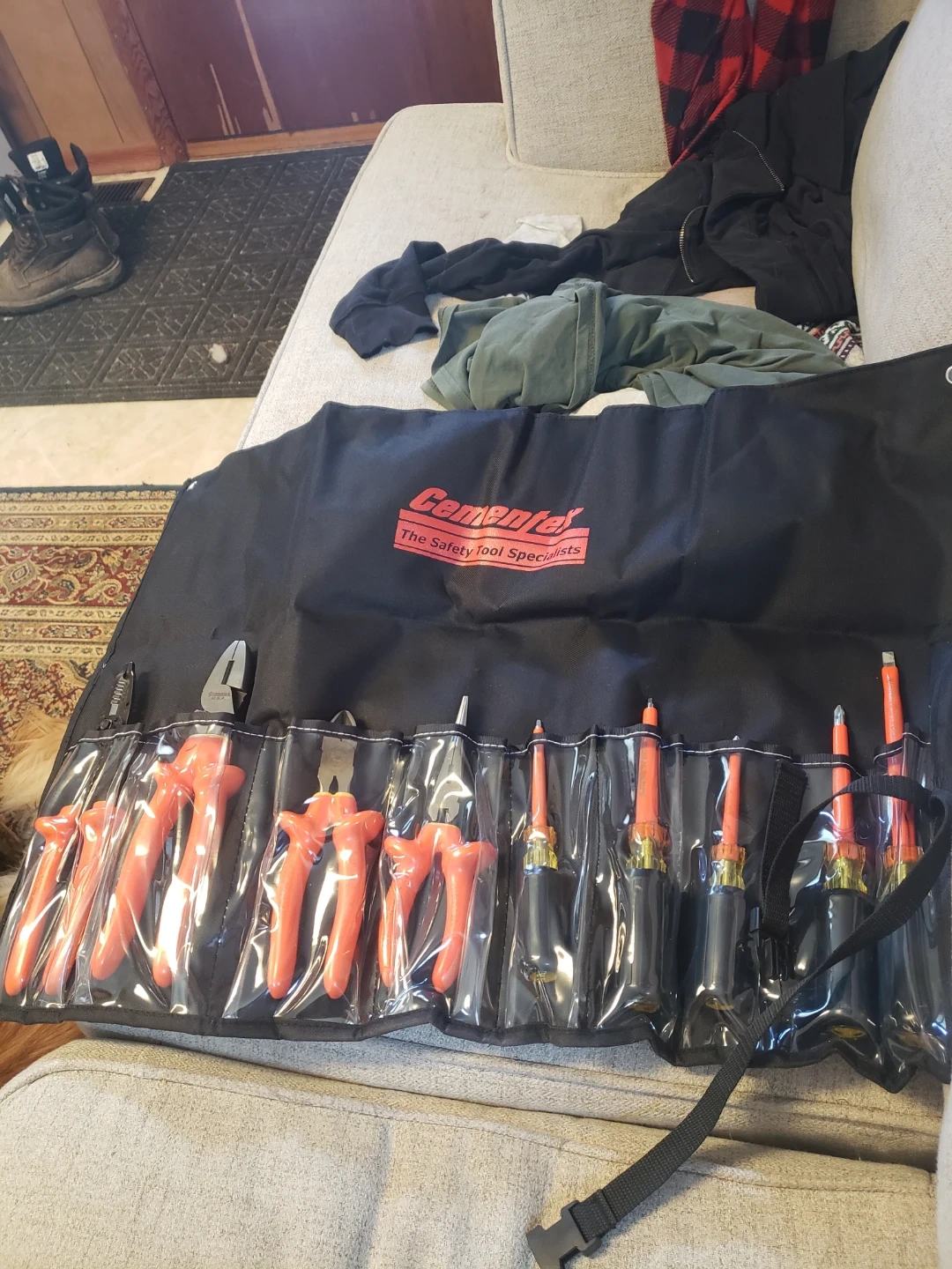 This Cementex Tools insulated tool set includes pliers and screwdrivers. It comes with a durable roll-up pouch for easy storage and transport. Ideal for electricians and tradespeople needing protection against electrical shock.