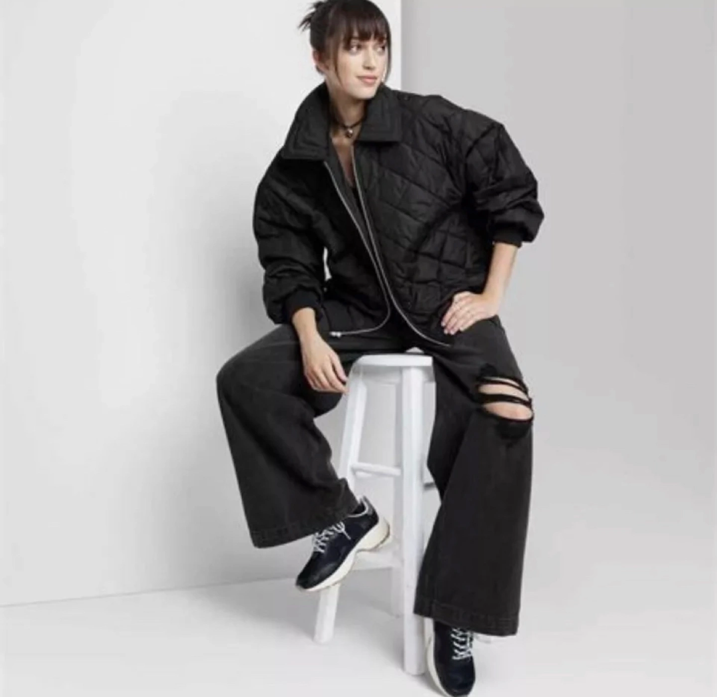 Brand new with tags Pickup Brampton or downtown Toronto Meant to be worn Oversized, check measurements on pictures Written as size small, can fit a medium too Description: Bomber jacket from Wild Fable™ with a diamond-stitch quilted construction. Fashioned in a neutral hue with a collared front and full-length zipper fastening. Features ribbed trim on the sleeve wrists and hemline. Designed with two functional pockets on the sides and a casual-fit silhouette that hits at the waist. Wild Fable™: A look for every story. Material: Polyester.
