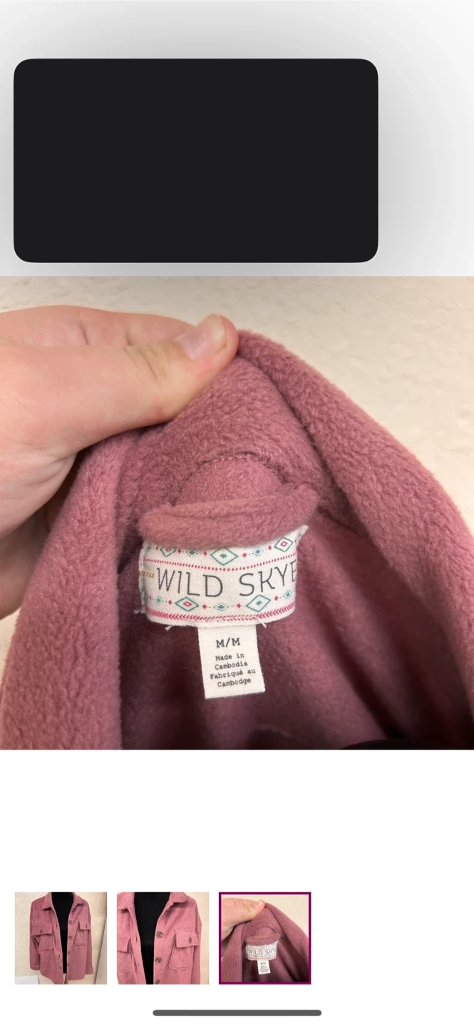 Wild skye brand. Button up fleece Shacket. Pink in colour. Size medium. Brand new condition $10 Pickup between kincardine & ripley or I can arrange delivery in port Elgin-Owen sound, walkerton-Durham, wingham-listowel-kw/cambridge, goderich-bayfield, Woodstock & Arthur-Orangeville-Newmarket-Lindsay-Peterborough AREAS.