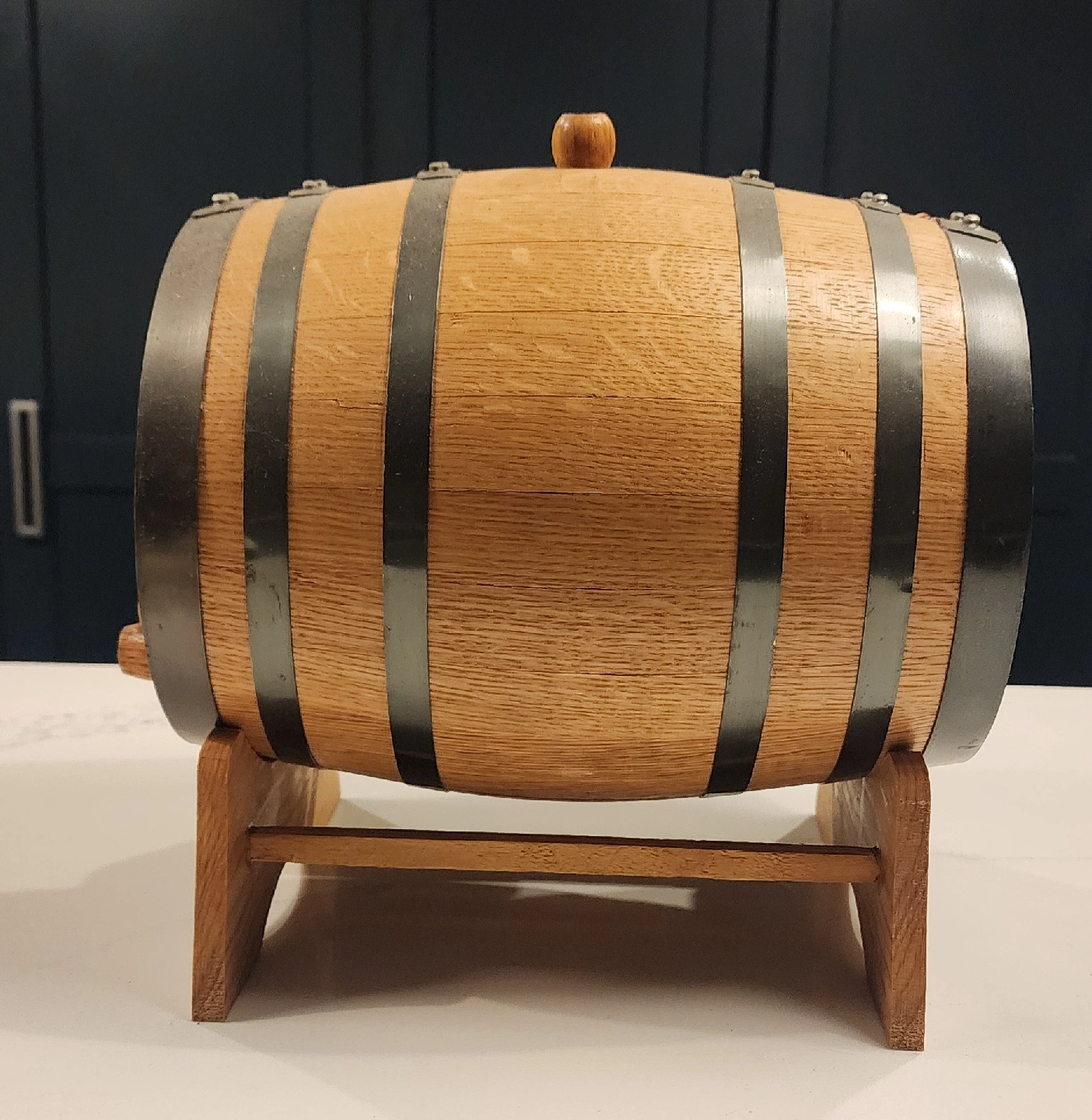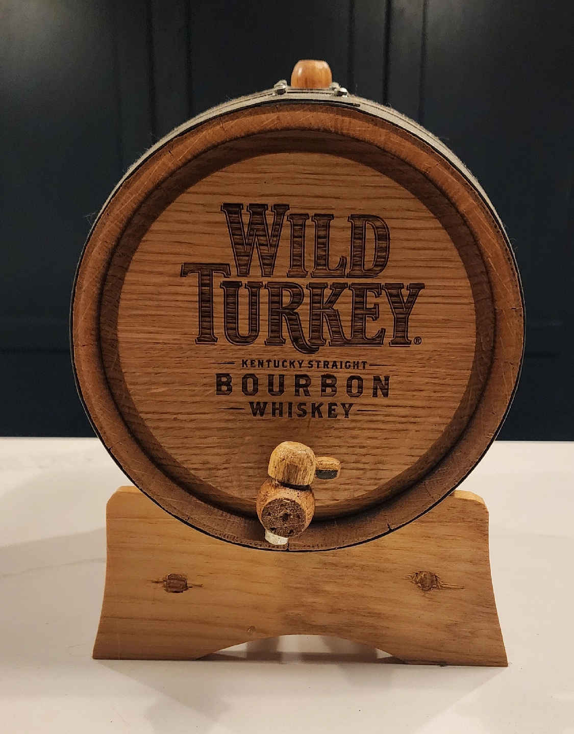Selling a Wild Turkey Bourbon Whiskey barrel, complete with a stand! It's in great condition and would make a unique addition to any home bar or collection. The barrel has a rustic, authentic look and feel, perfect for displaying or aging your own spirits. Message me if you're interested!