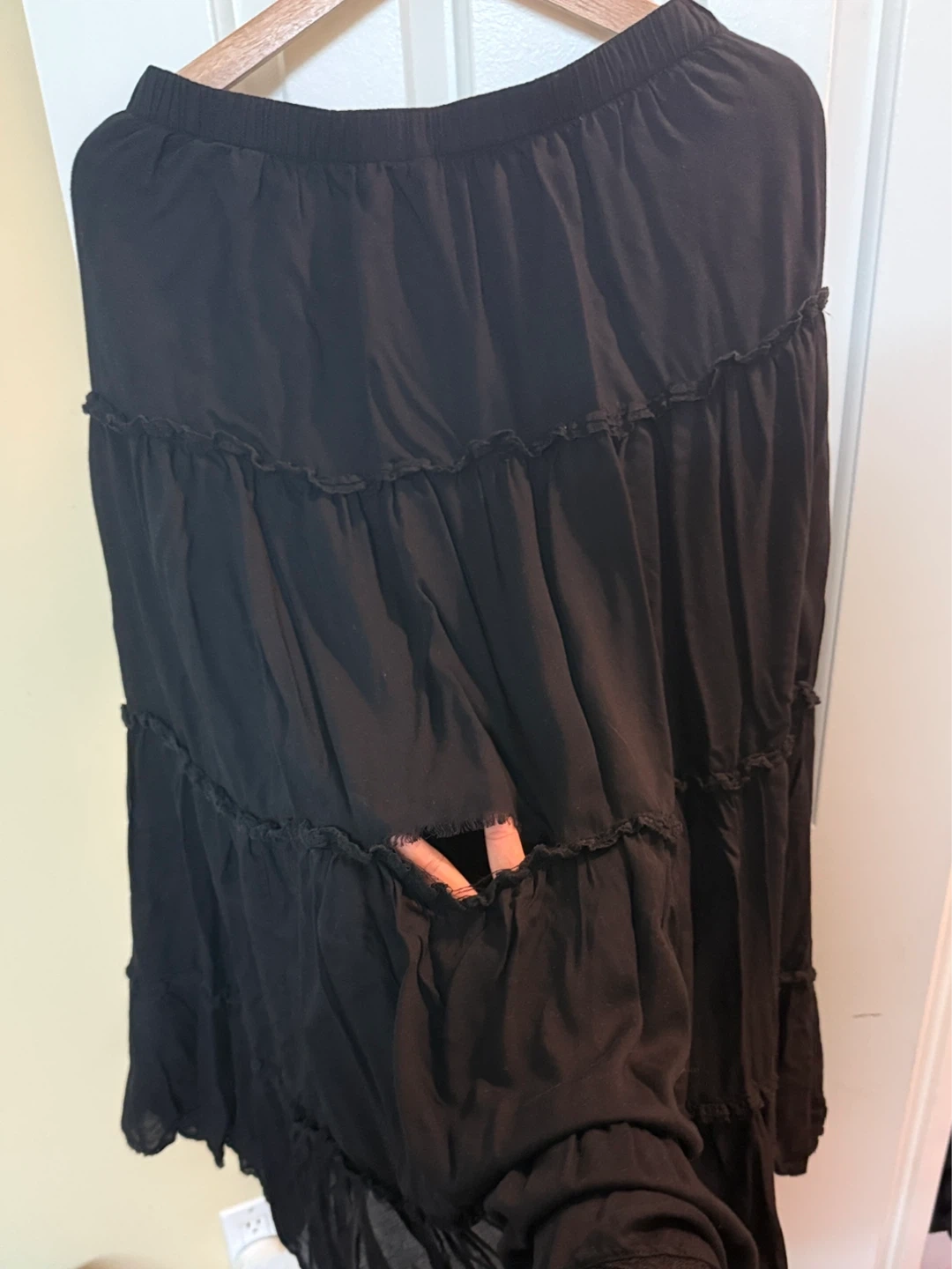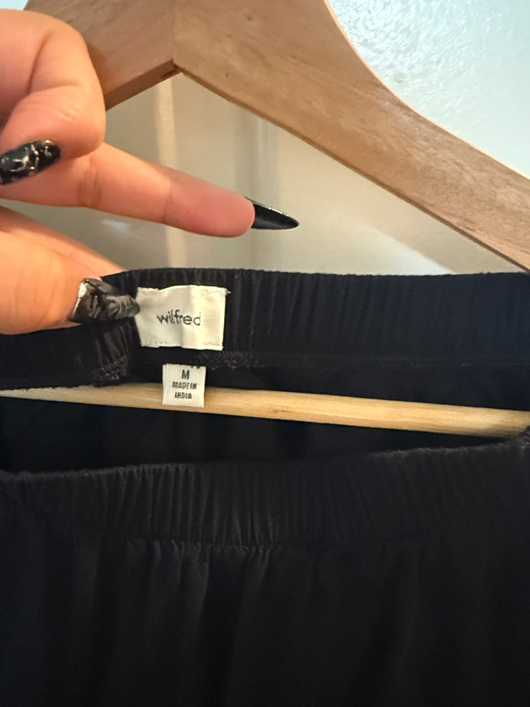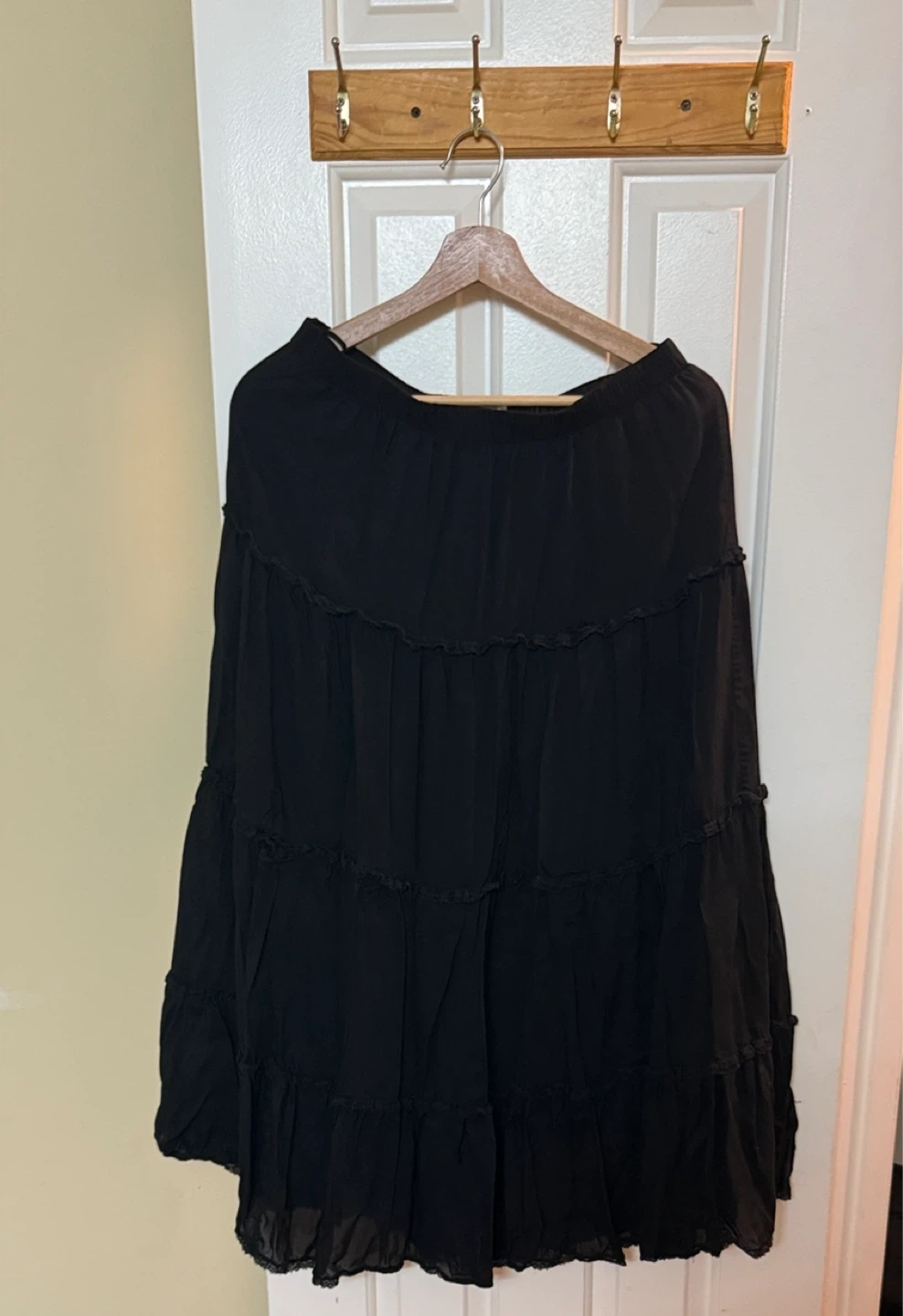1000+Selling a cute Wilfred black tiered midi skirt in size M! It's in great condition and ready for a new home. Perfect for adding a touch of effortless style to your wardrobe Has a hole, not visible when worn