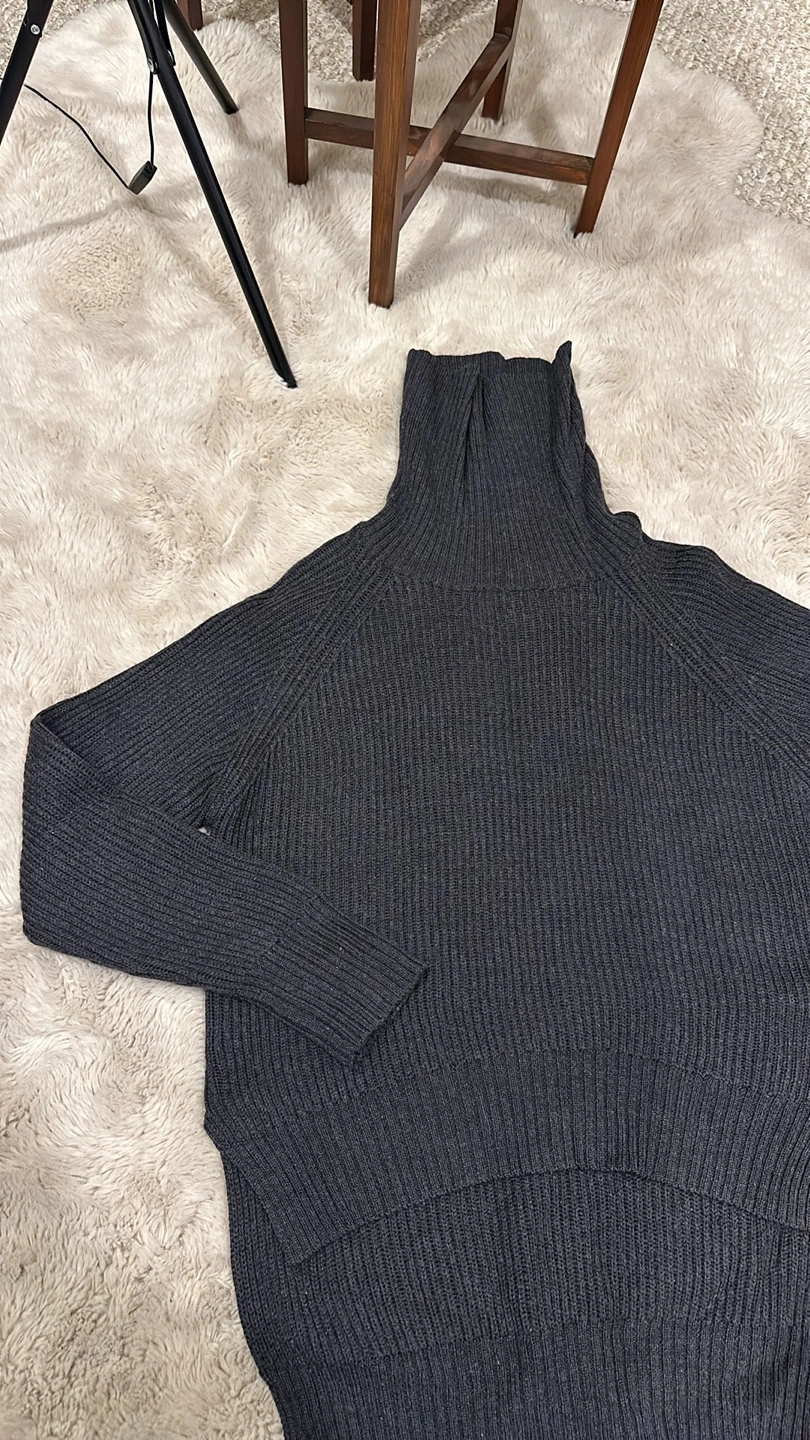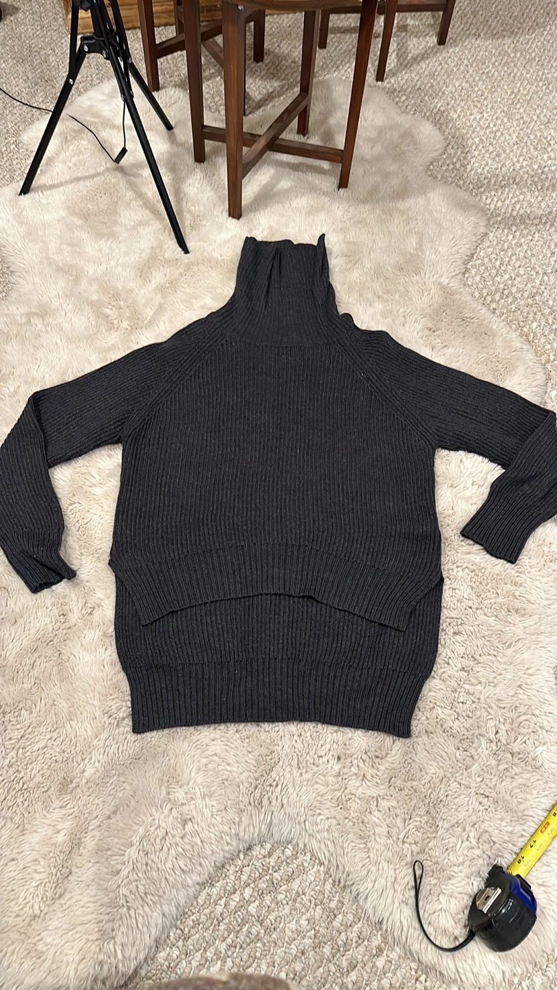 10Long sleeve, ribbed, charcoal grey turtleneck sweater. Slightly oversized. In like new condition
