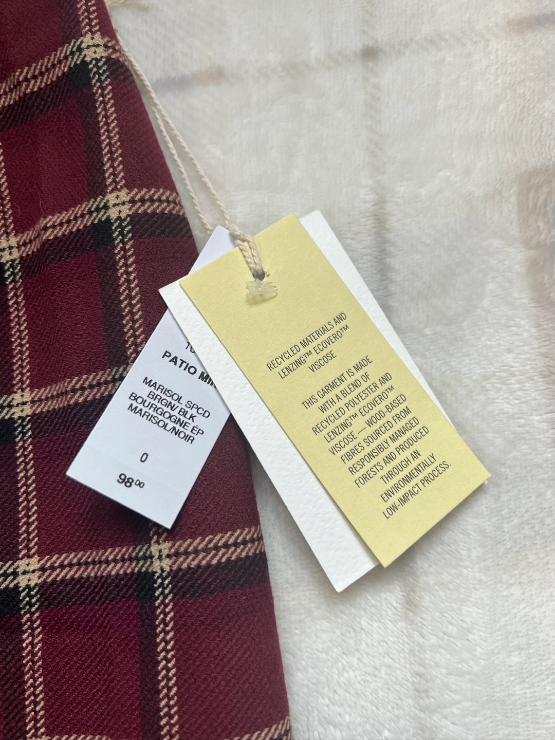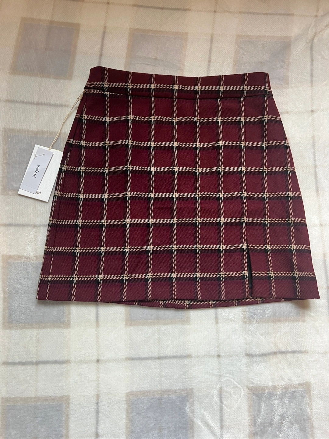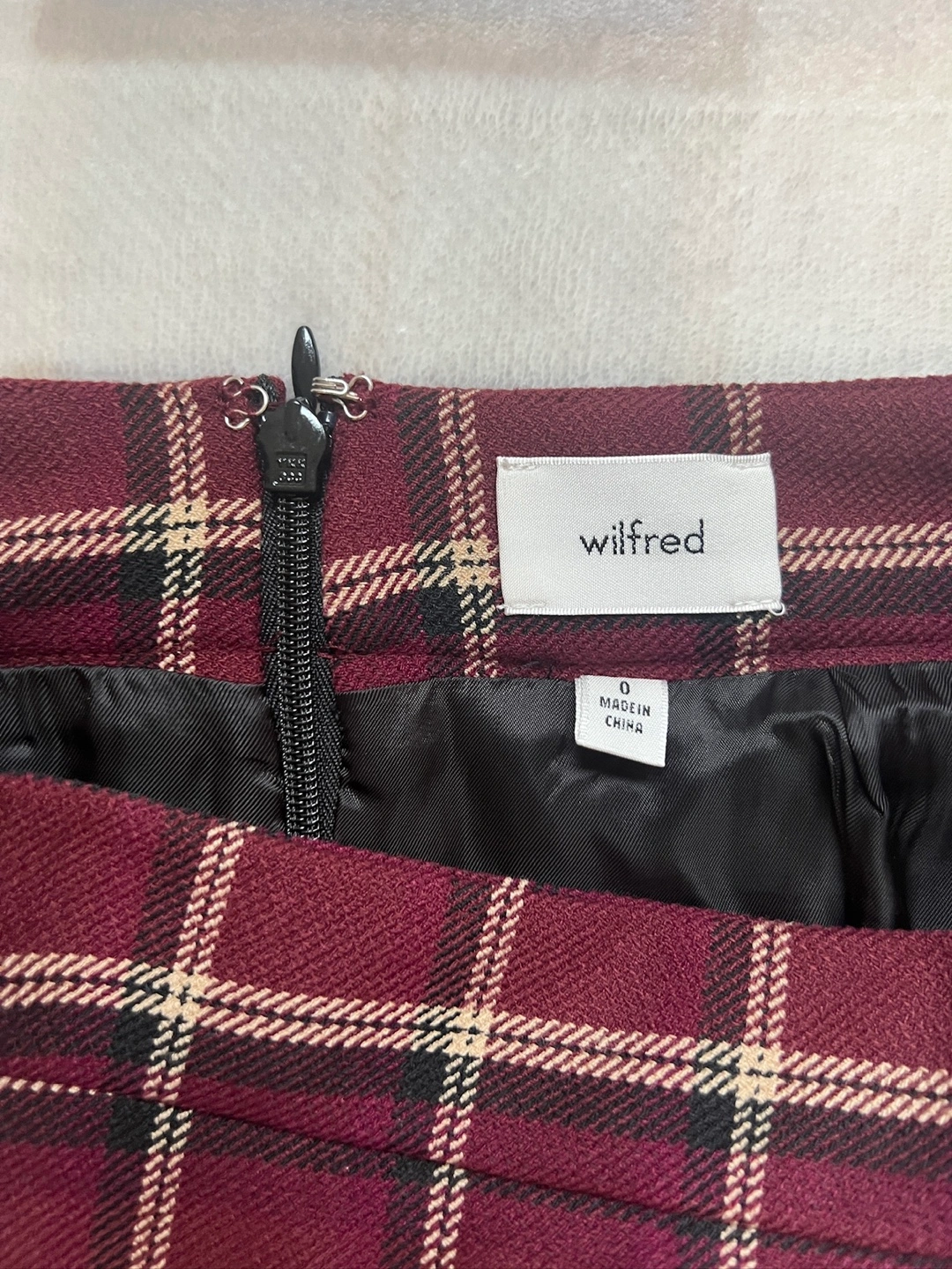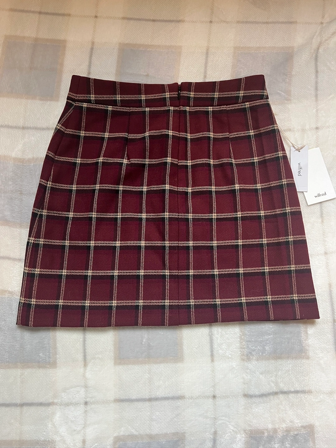 15Selling a Wilfred patio mini skirt in a lovely plaid pattern! It's a size 0 and features a stylish slit. The skirt is made with recycled materials and Lenzing EcoVero viscose. The original price was $98 Brand new with tags