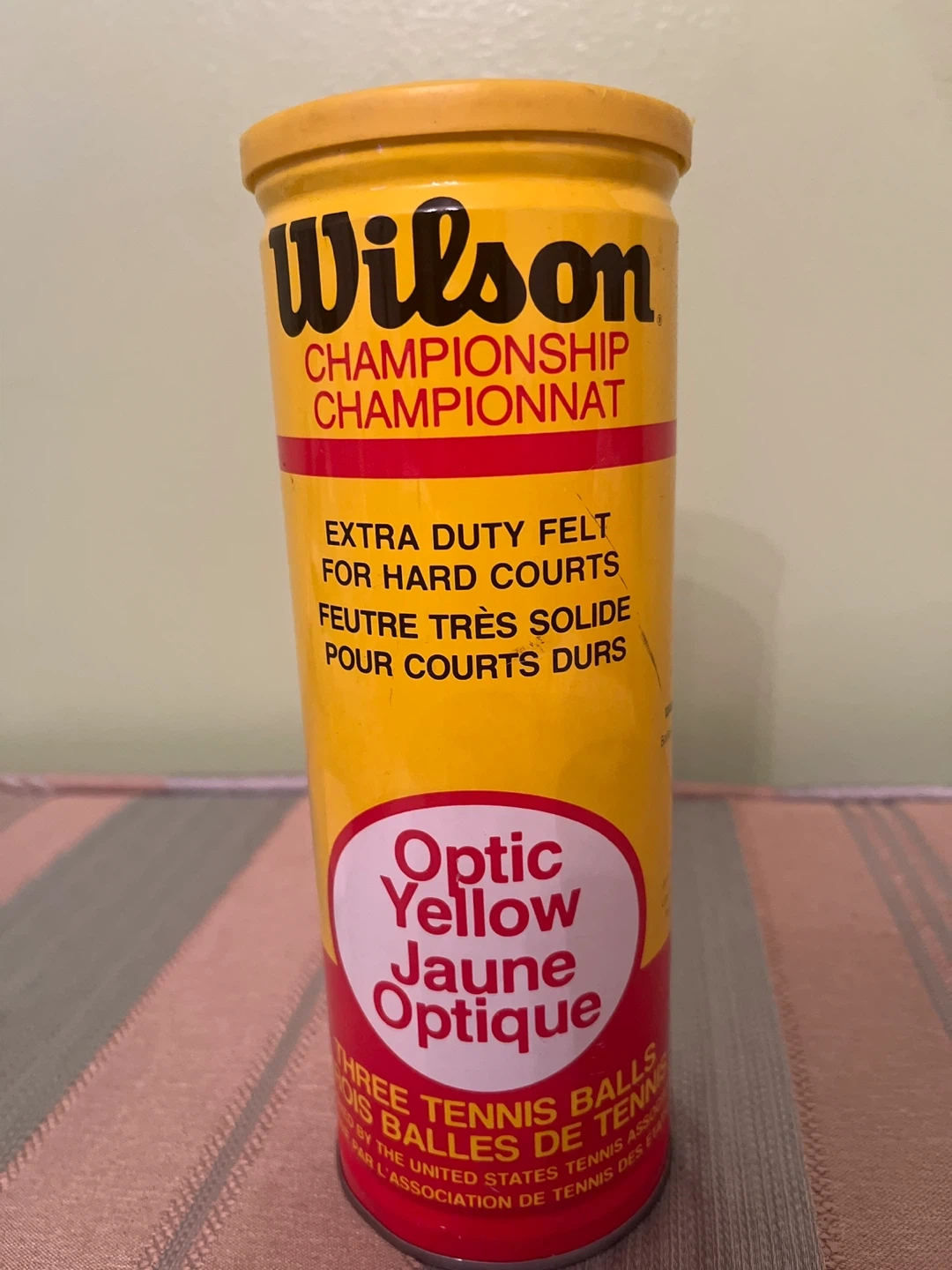 10Selling a can of Wilson Championship tennis balls. This can includes three tennis balls, perfect for your next game on hard courts! The balls are optic yellow.