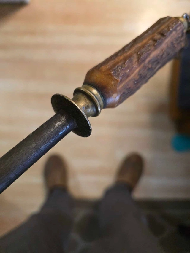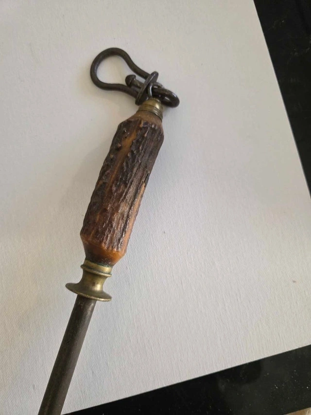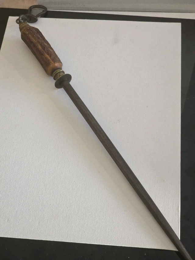 86Sharpen your culinary skills with this vintage 99 J Wilson Sycamore St. Sheffield England 20 inch knife sharpening steel! This well-preserved sharpening steel is ready to bring new life to your favorite blades. The steel shows some signs of age and use, which only adds to its authentic vintage charm. Wonderful patina. GREAT display piece. Specifications: - Brand: 99 J Wilson - Origin: Sycamore St. Sheffield, England - Type: Knife Sharpening Steel - Handle: Antler handle with brass ferrule and hanging ring. - Condition: Used, with signs of wear consistent with age. If you see this ad, it's still available!