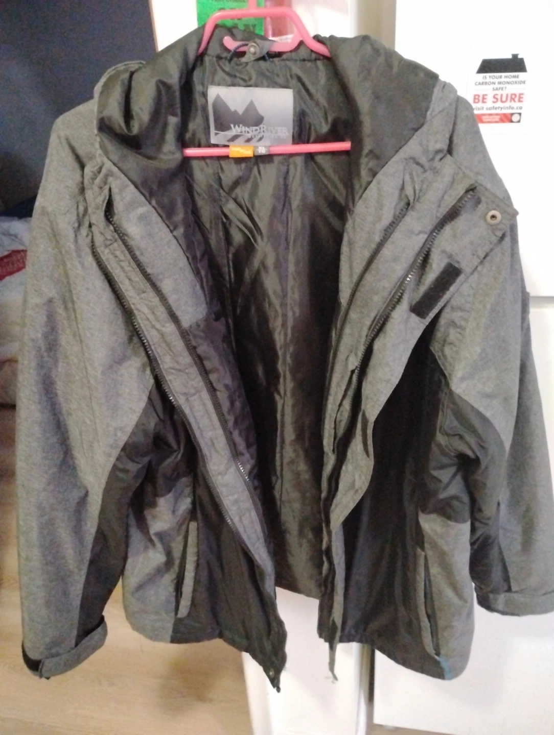 121Here's a Wind River jacket in grey! It's in great condition and ready for a new home. Perfect for those cooler days!