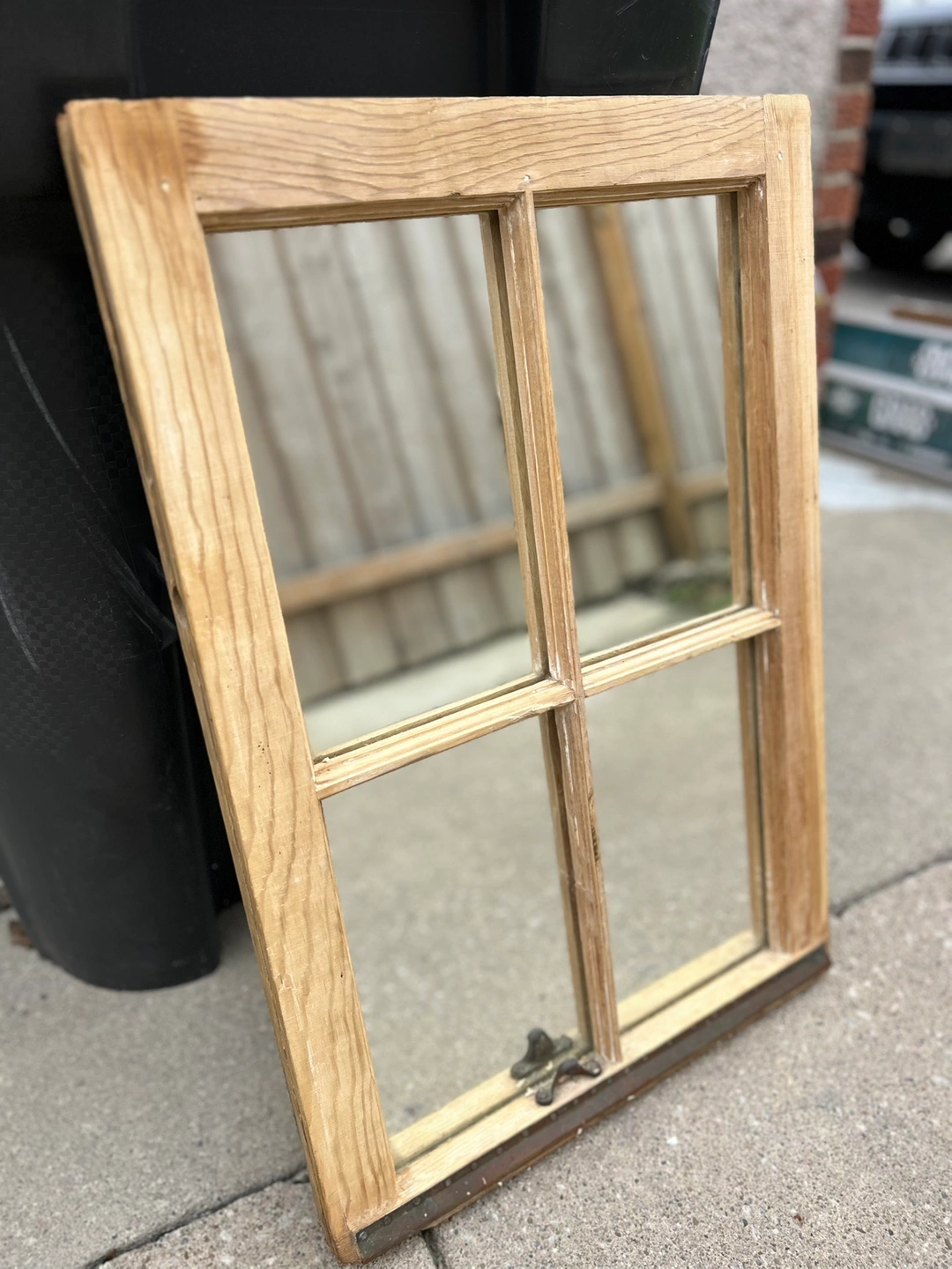 Rustic Wooden framed mirror with a 4-pane window design.