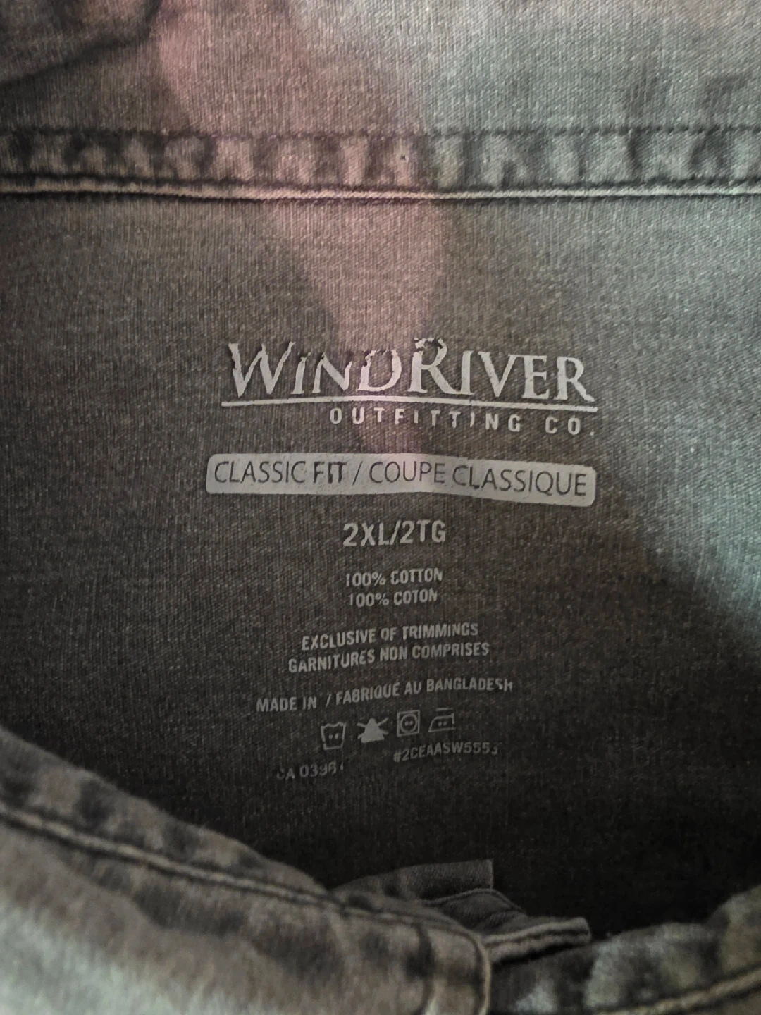 86Wind River Classic grey denim button-up long sleeve. Size 2XL. Great condition.