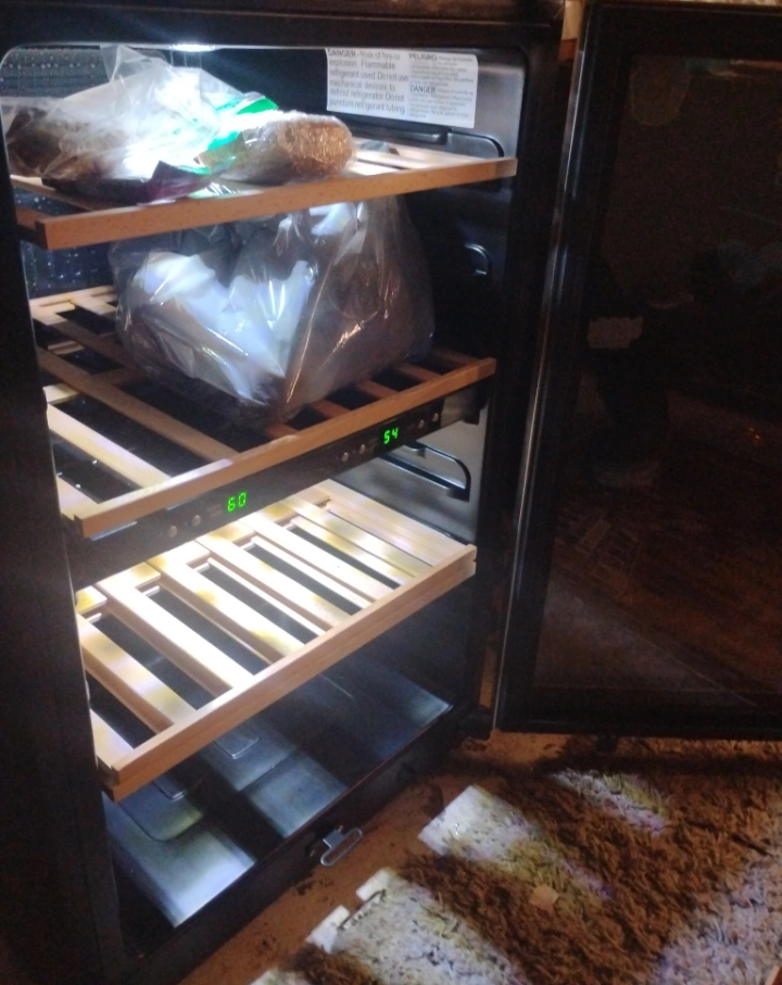 10Wine cooler with wooden shelves. It has a digital temperature display.649$ new