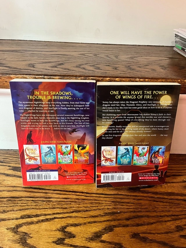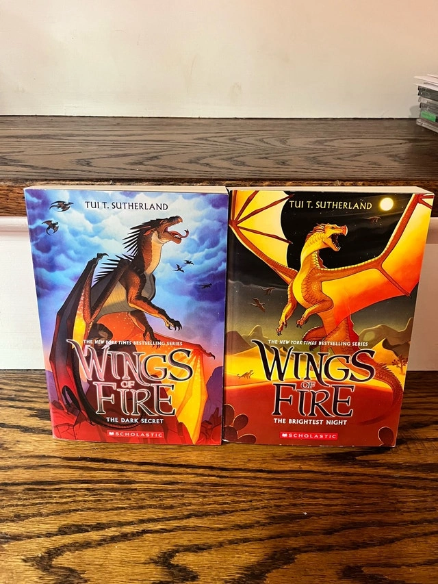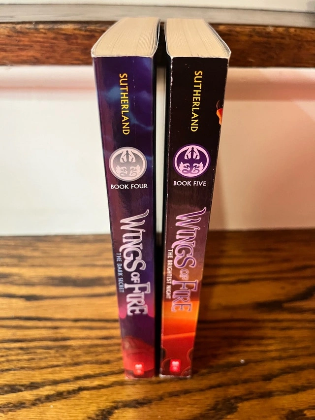 142Dive into the thrilling world of Pyrrhia with this pair of Tui T. Sutherland's "Wings of Fire" books, specifically books four and five in the series. "The Dark Secret" and "The Brightest Night" are in good condition and ready to transport young readers to a land of dragons, adventure, and prophecy. These books are great for middle grade readers, particularly those who enjoy fantasy and action. * Book 4: The Dark Secret * Book 5: The Brightest Night 5 for both books. Check out my other listings for more cool stuff!
