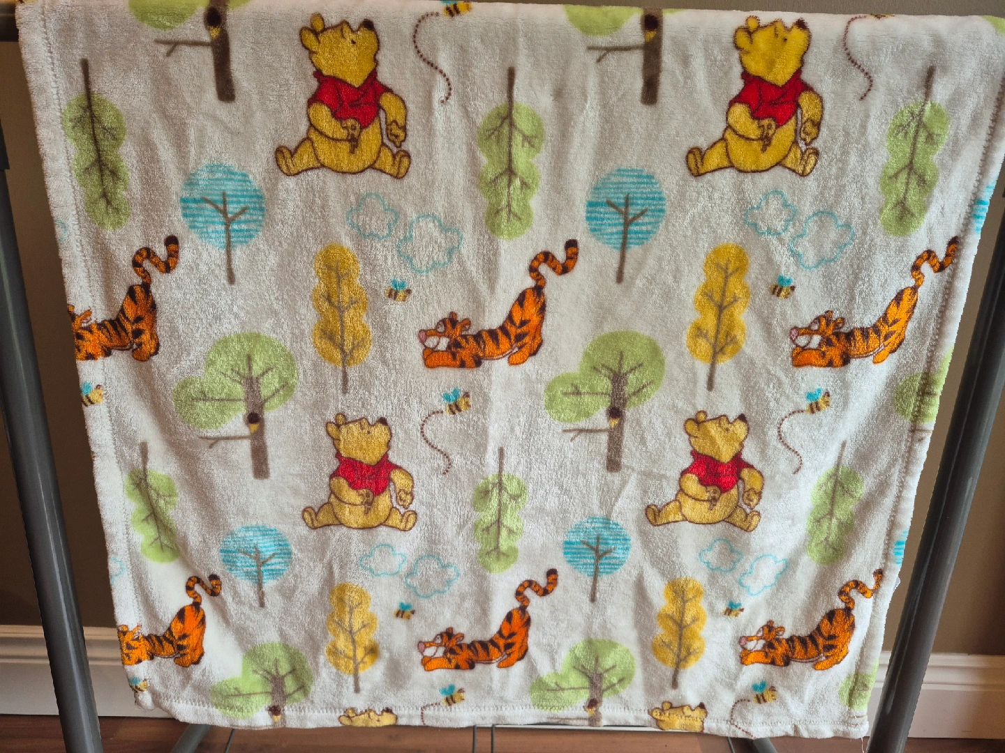 Cozy Winnie the Pooh themed baby blanket featuring Pooh and Tigger. Perfect for keeping your little one warm and snuggly.