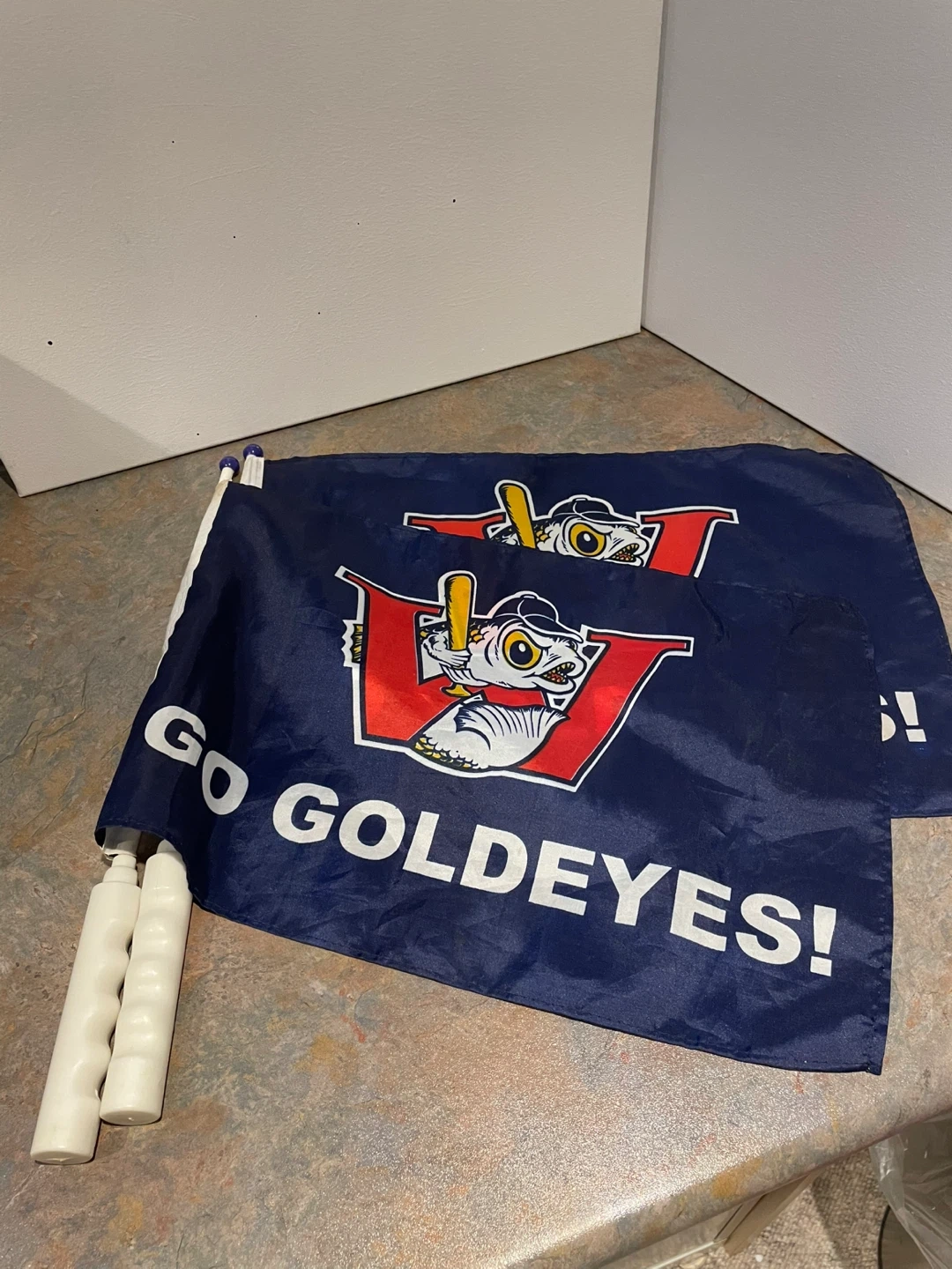 31For the local baseball fan - get ready for the 2026 season! Set of 2 flags, durable nylon single side logo, heavy duty plastic handle with molded hand grip. Flag: 14” x 11.5” - Handle: 18” long Pick up in East Kildonan, cash please, no delivery