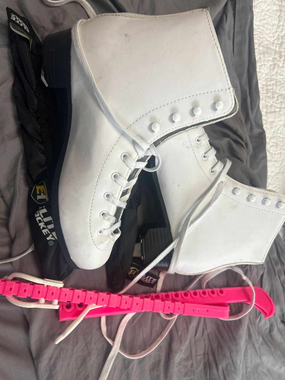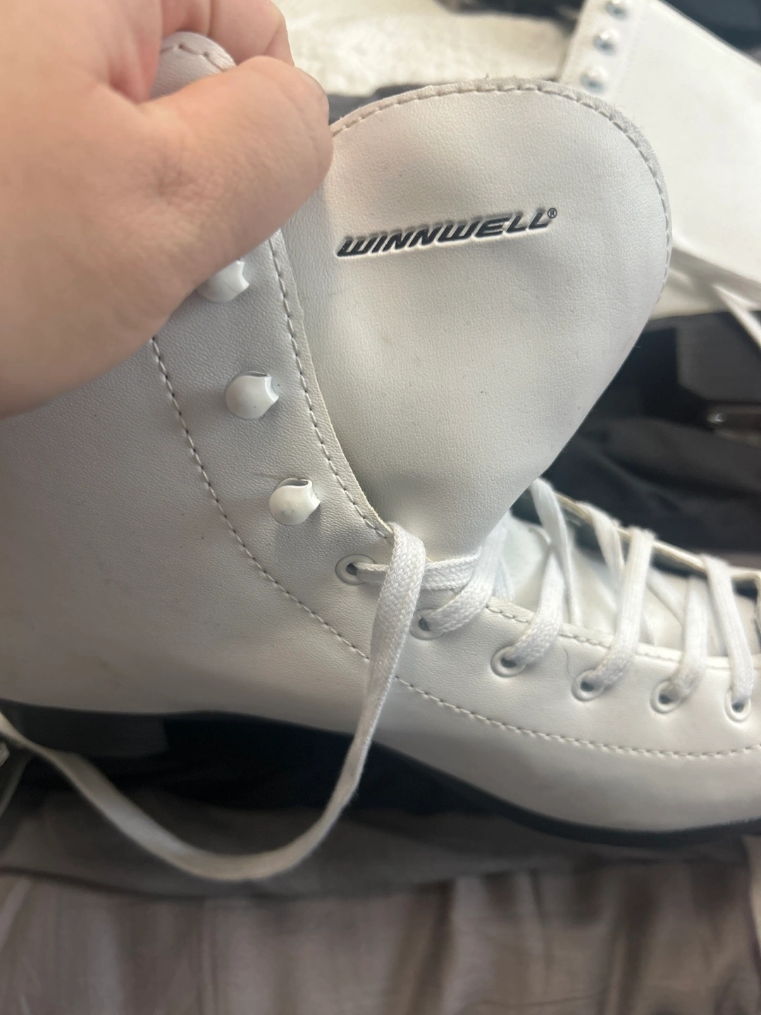 104Selling a pair of Winnwell figure skates in white. They're in good condition and ready for some fun on the ice! Size 6. Comes with soft and hard covers.
