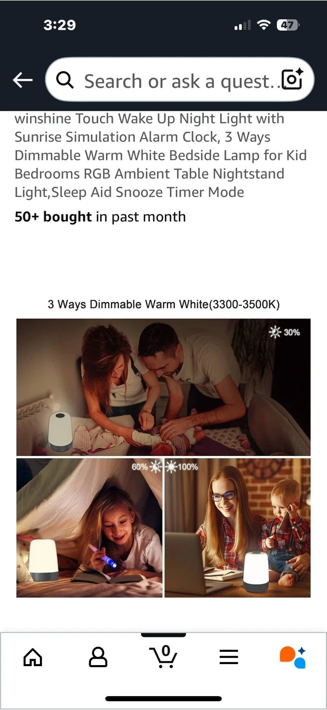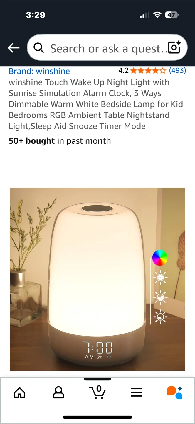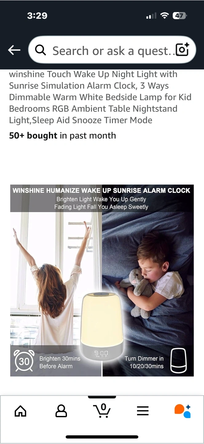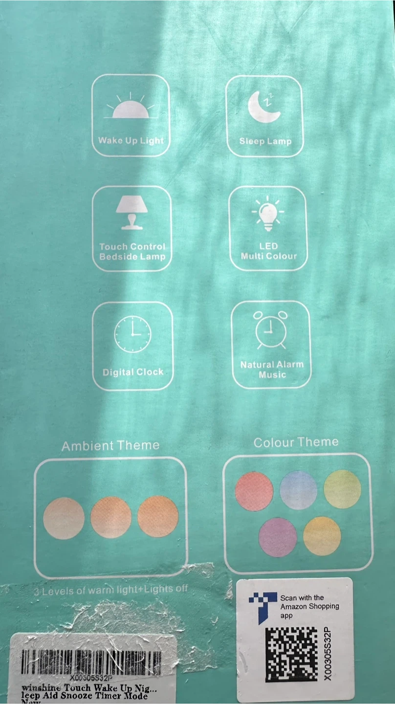 Selling a Winshine Touch Wake Up Night Light with Sunrise Simulation Alarm Clock. It has 3 Ways Dimmable Warm White Bedside Lamp for Kid Bedrooms RGB Ambient Table Nightstand Light, Sleep Aid Snooze Timer Mode. It also features touch control, and natural alarm music