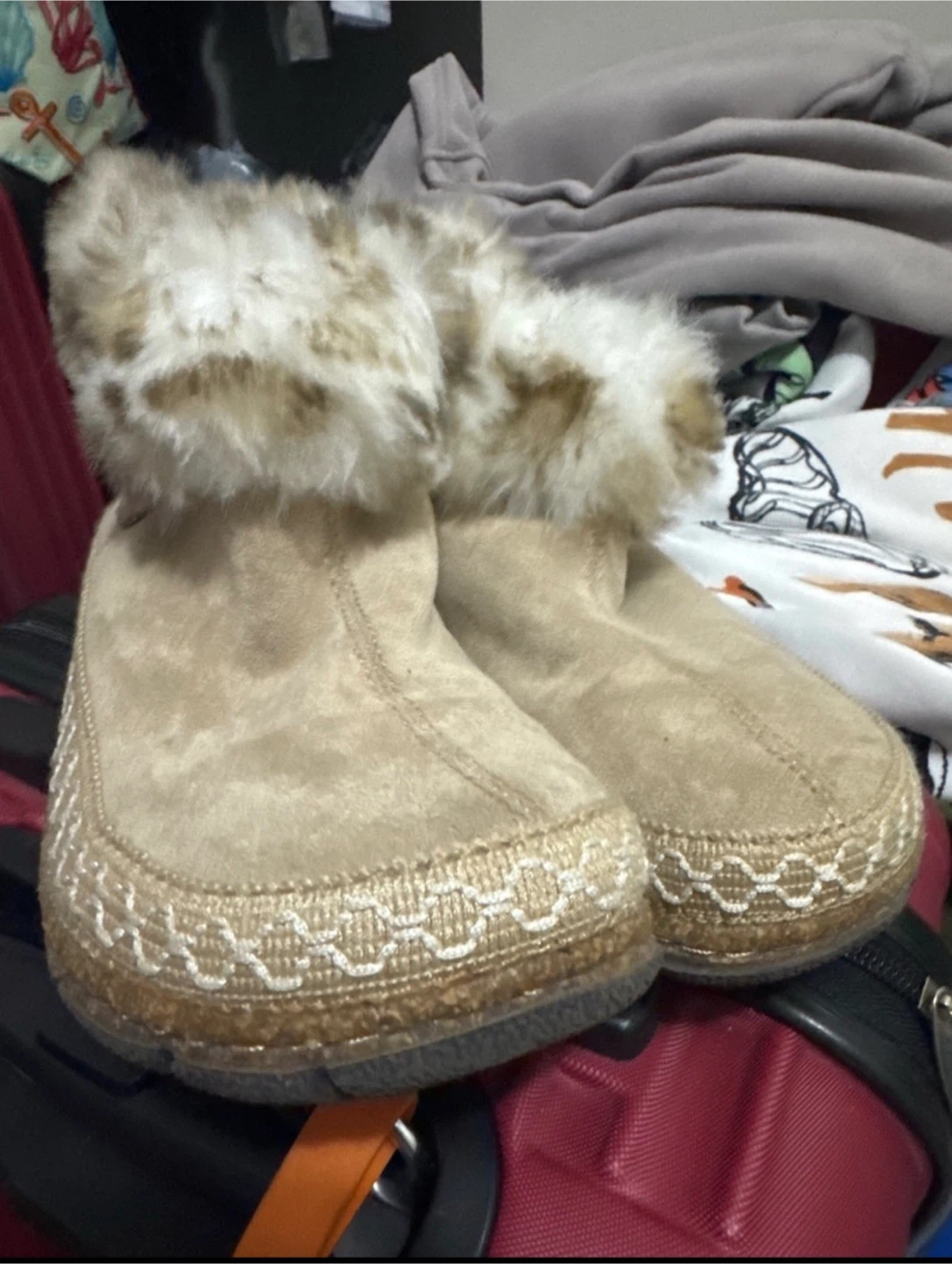 35Cozy Earth Origins boots with a soft suede exterior and faux fur trim! These boots are perfect for keeping your feet warm and stylish during the colder months. They feature a comfortable design and durable sole, making them great for indoor and light outdoor wear
