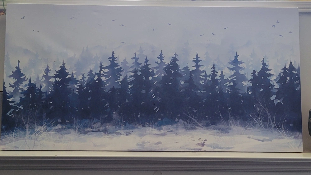 25This is a beautiful canvas print featuring a winter forest scene. It would look great in any room!