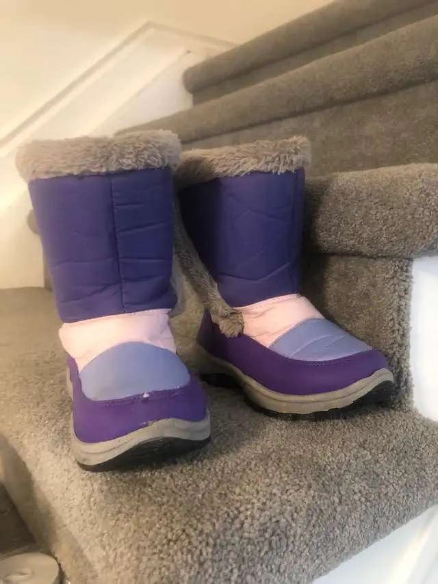 Jacket + Winter Boots (Mountain Warehouse) + Pink Gloves : $45 (Currently Market price : $121+ taxes) Jacket: Worn for a month last year Colour: Navy Current Market Price: $69.99 + taxes; Suitable for 7 -8 Years The Galaxy Kids Insulated Jacket will ensure your little one stays warm and protected throughout the winter. A water-resistant outer and microfibre padding with a longline style for extra coverage and a faux-fur hood for added comfort. Water-resistant - Treated with Durable Water Repellent (DWR), droplets will bead and roll off the fabric. Light rain, or limited exposure to rain Fleece Lining - Extra warm and very comfortable Faux Fur - Synthetic fur adds warmth and comfort and looks great too Front Pockets - Convenient pockets on the front Longer Length - Sits below the hips for added comfort and warmth 2 year warranty - Includes a 2-year warranty for guaranteed quality and peace of mind Padded Insulation - Microfibre filling provides excellent heat retention, a synthetic alternative to down Winter Boots: Current Market Price : $39.00+ Taxes ; Size : Kids -11 Keep your little one's feet warm with these purple, pink and blue winter boots. They are in used condition, as you can see from the photos, but still have a lot of life left in them. Looking to give these boots a new home where they'll be put to good use. Snap them up before the snow flies! Don't delay, because if you see this ad, these boots are available! Gloves : Curent Market Price : $12 + taxes These are George brand gloves, perfect for keeping your little one's hands warm during those chilly days. These gloves are in good used condition, ready for new adventures. They have a comfortable fit and durable construction for all-day play! While I can't guarantee these gloves will give your child the power to build a snowman army, they'll certainly be cozy enough to try! If the ad is up, the gloves are still available; let's not play hide-and-seek with availability, okay?