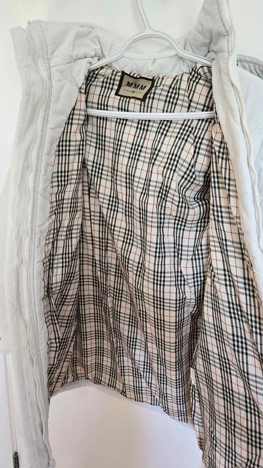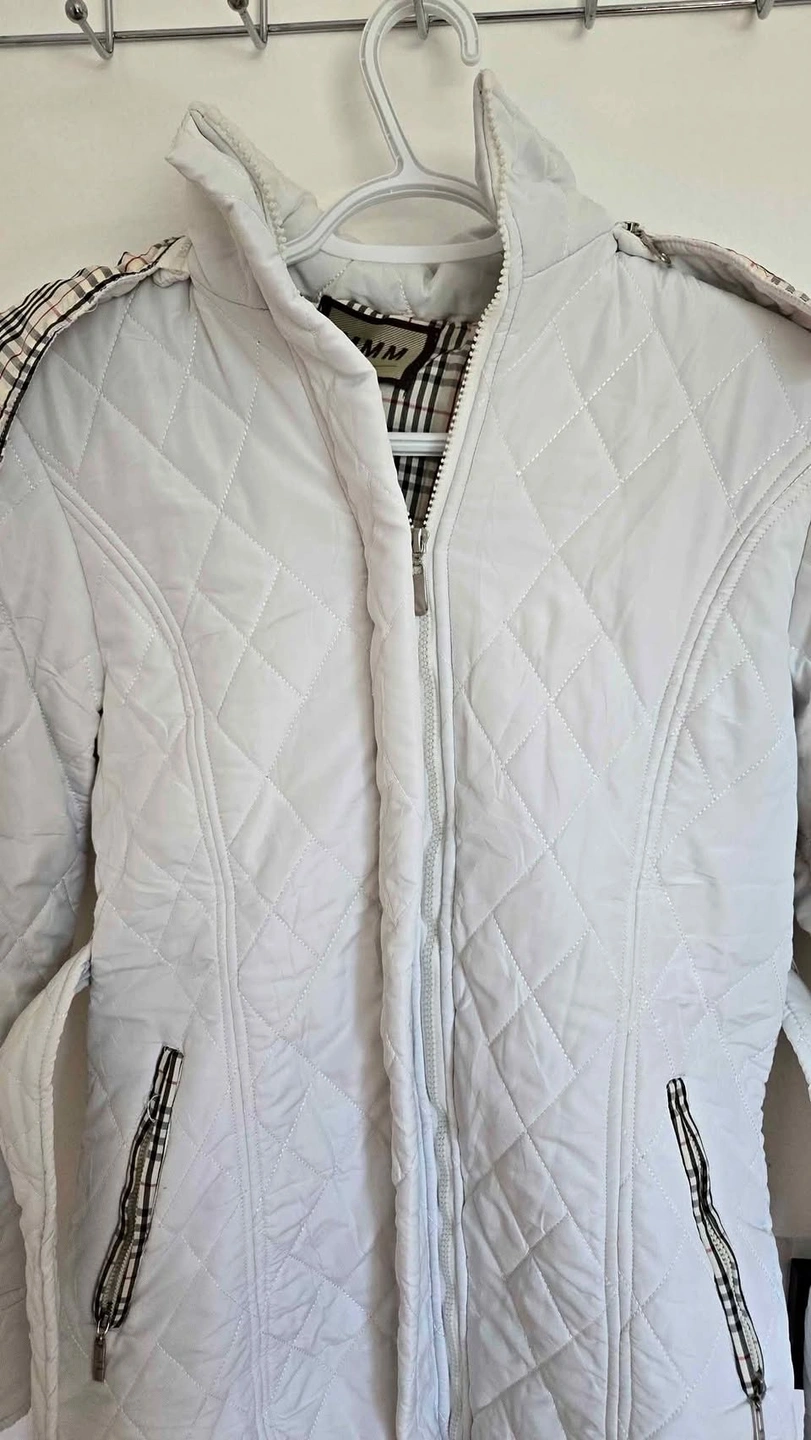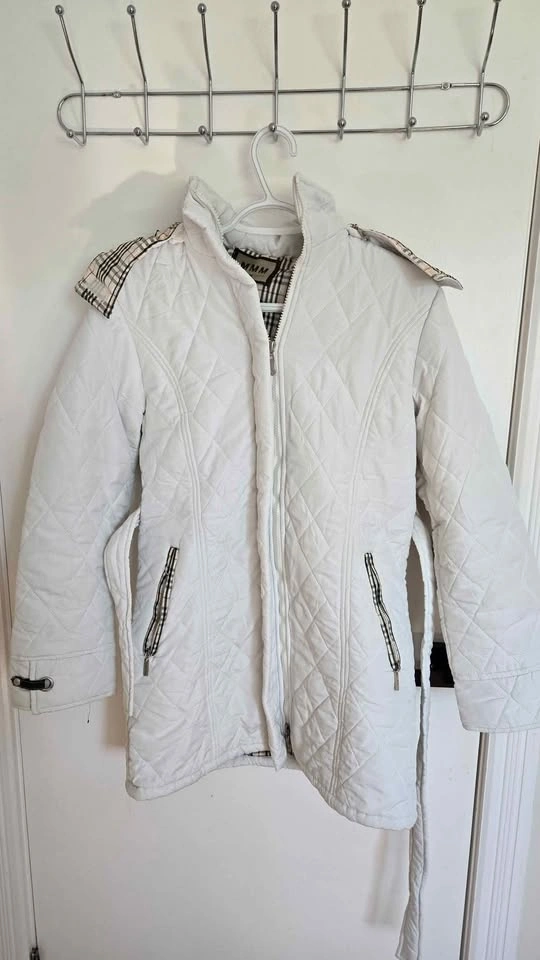 60Warm, insulated parka jacket in medium size. Features hood, pockets, and durable outer shell. Great for cold weather and everyday wear.