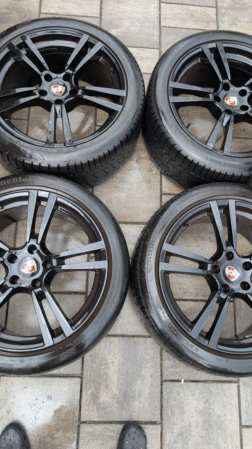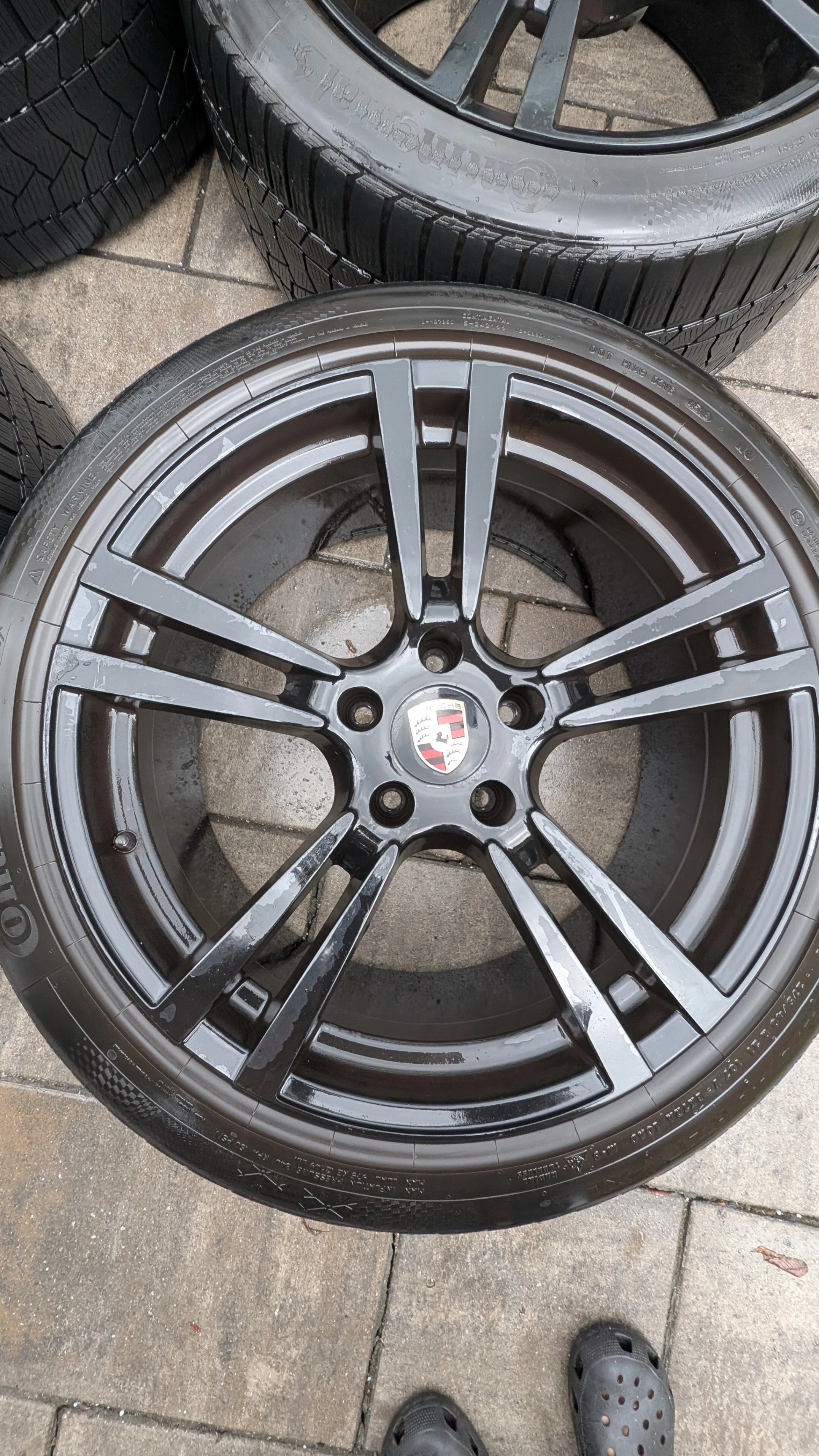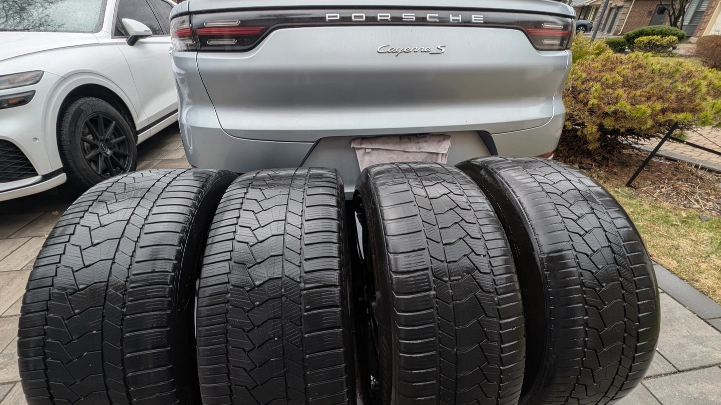 Staggered style: Front 275/40R21 Rear: 305/40R21 These came off a 2022 Porsche Cayenne S. which was sold in 2024 and they fil several different Porsche SUV models. They have about 14k on them and come with Tire Pressure Monitor Sensors (TPMS). Front Tires although still usable but worn on sides as shown on the picture!