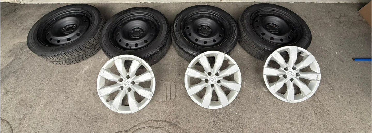 Selling a set of four wheels with Michelin tires, complete with Toyota hubcaps. These are in good condition and ready to be installed on your vehicle. Perfect for winter tires or as a spare set! Just missing one hubcap 205/55/r16 Michelin tires Pick up only!!! Price is negotiable