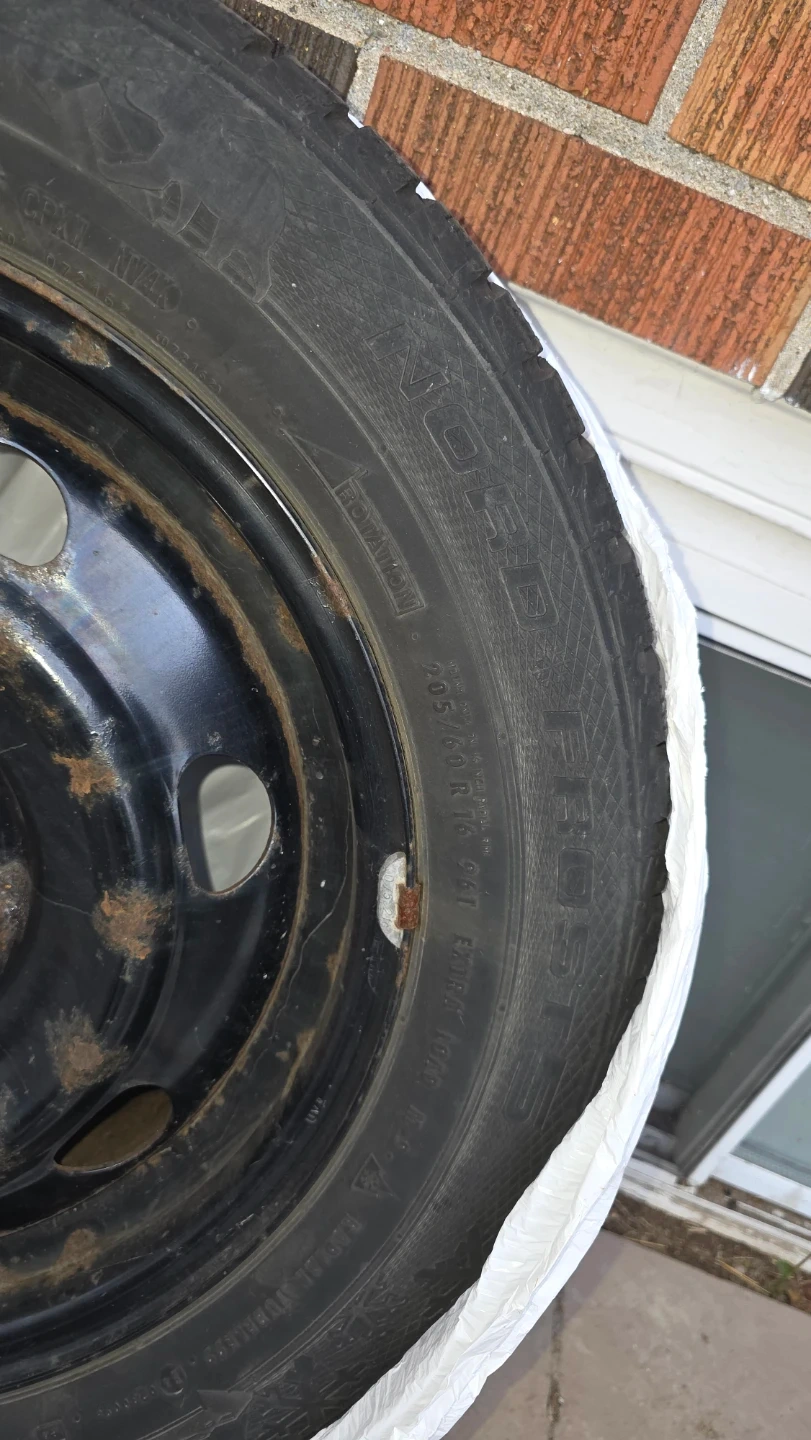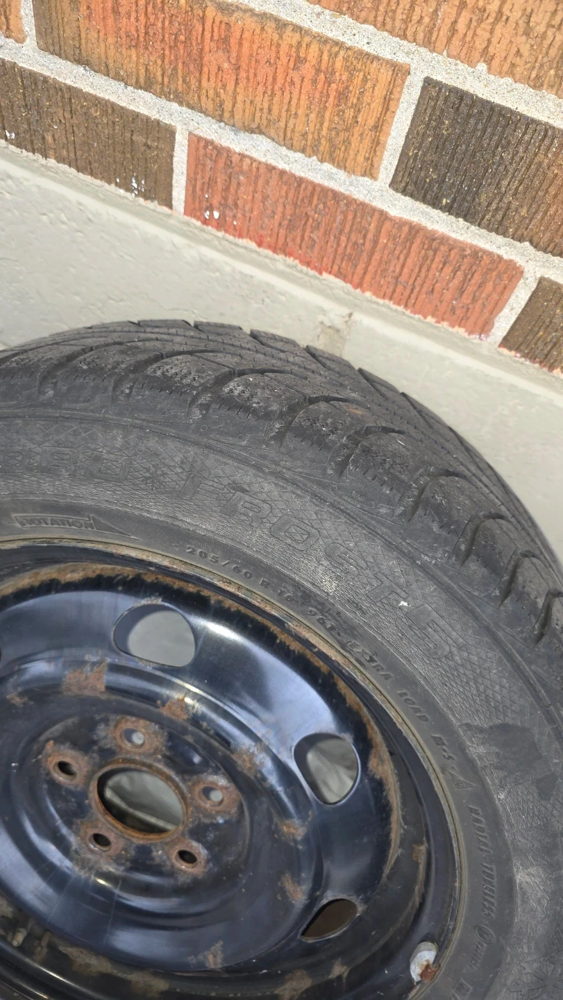 12Selling a Winter tire with steel rims used on Mazda3.The size is 205/60R16. Bolt pattern is 5×114.3 mm. The tires are good for 1 to 2 seasons. One tire has light damage to its sidewall , can be seen in the pictures. The price is negotiable.