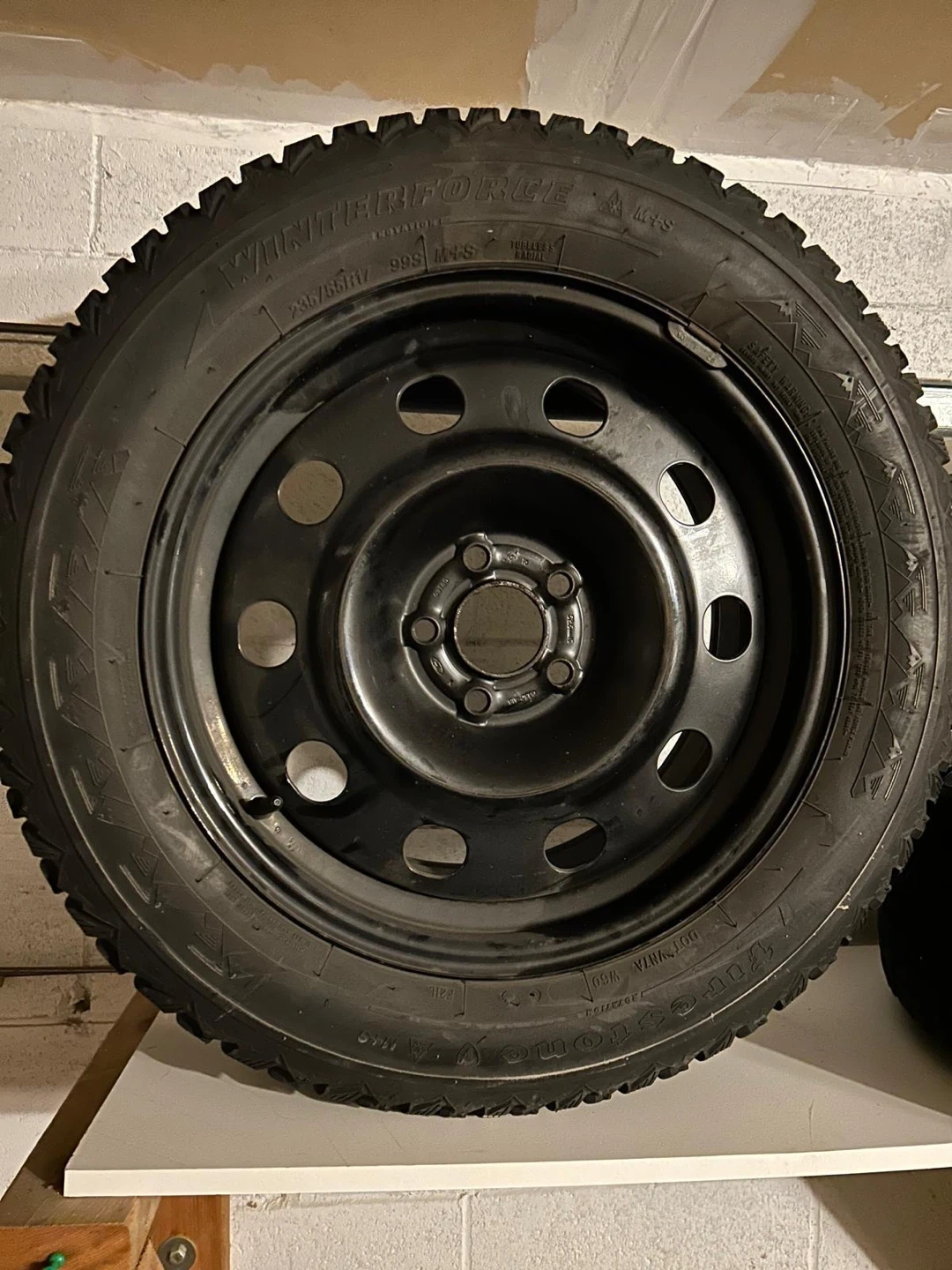 Selling a set of winter tires. The size is 235/65R17. They are in good condition and ready for the winter season! Wheel bore size is 65.1mm Bolt pattern 5x114.3