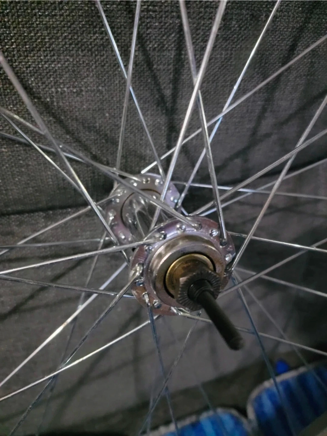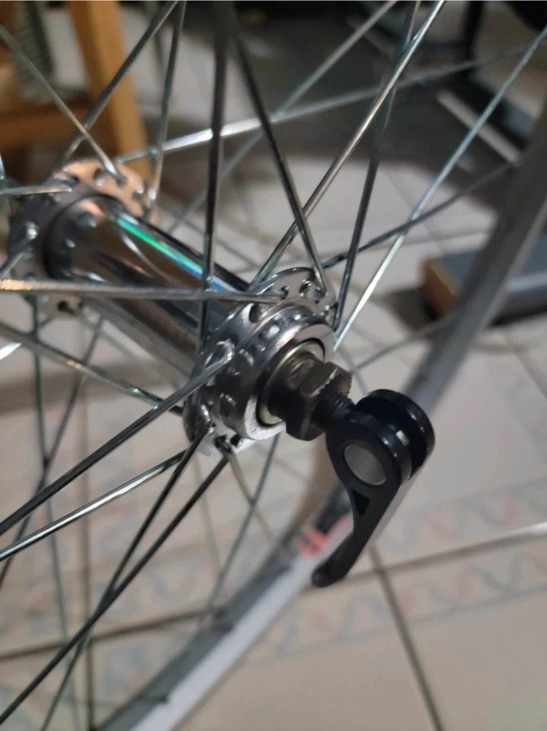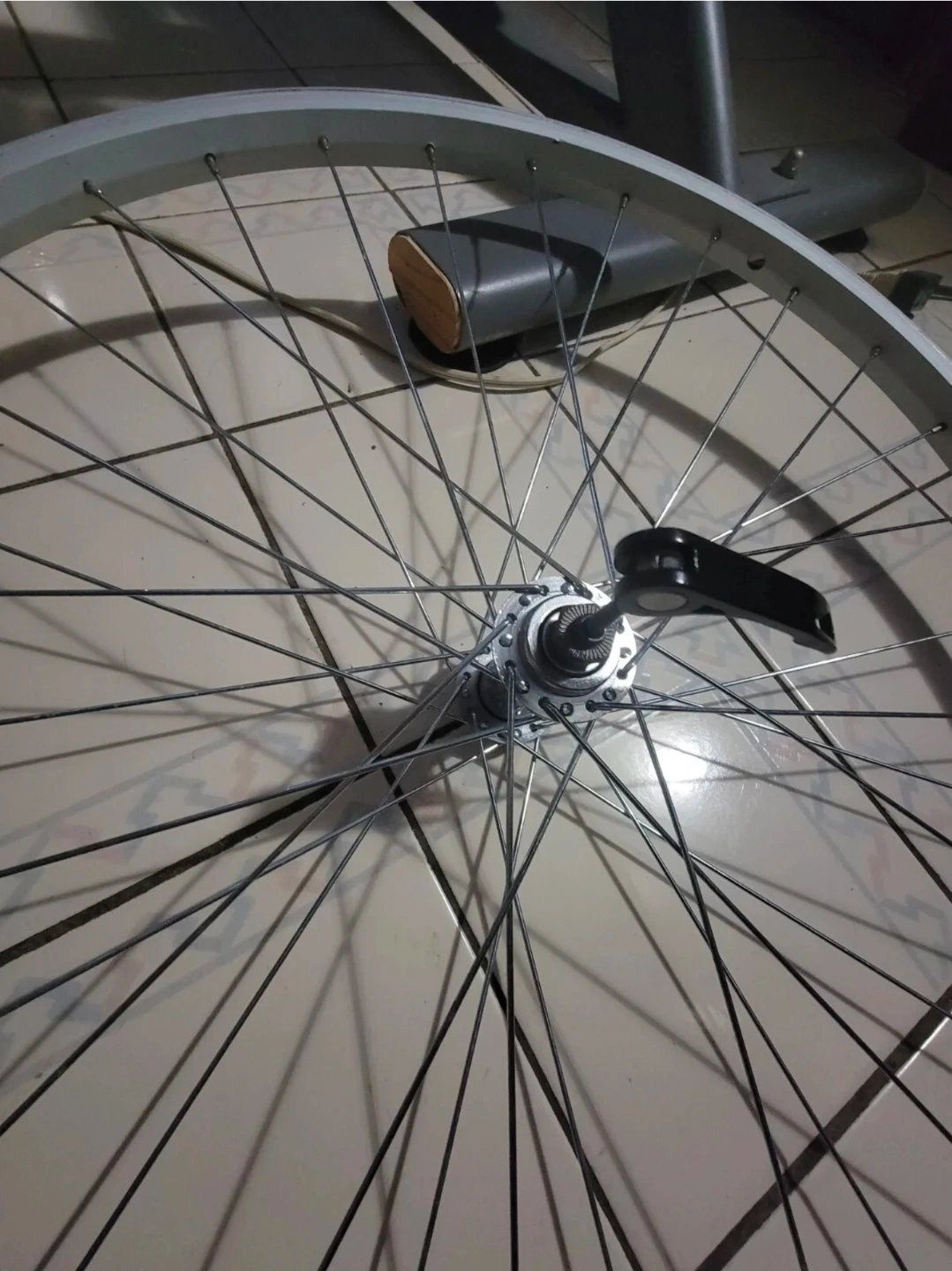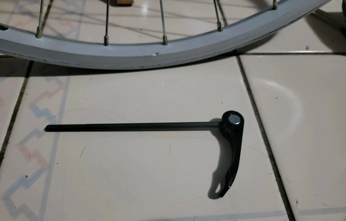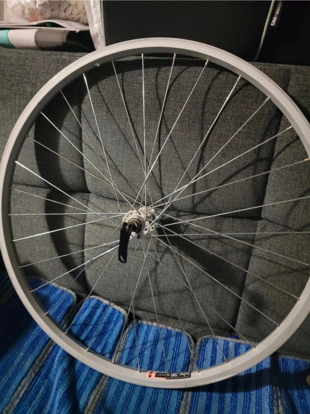 This alloy front bike wheel is lightly used, sealed bearing and comes with skewer quick release skewer clip bolt lever but bolt missing (see last photo).