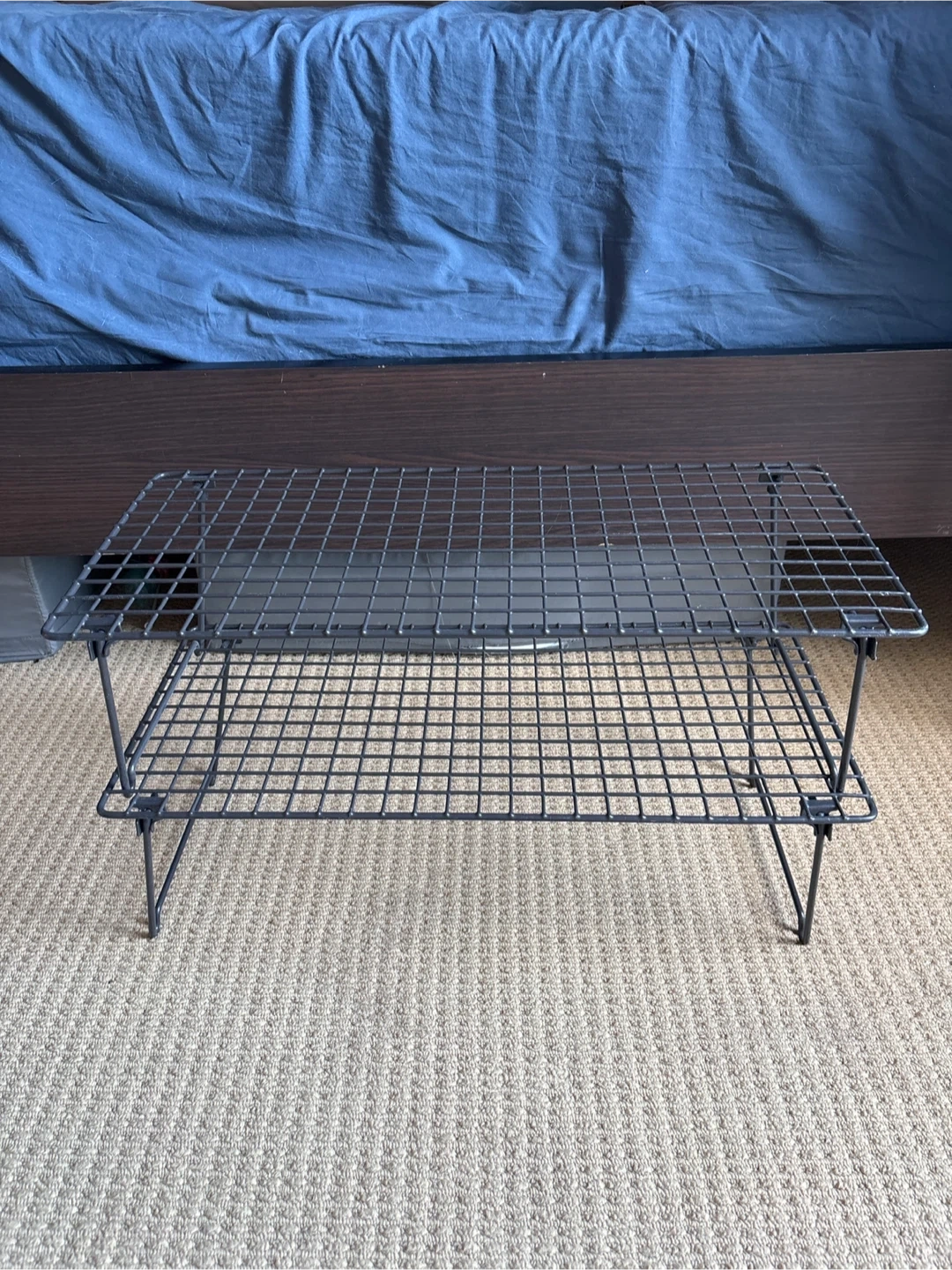 Selling a black wire shelf rack. It's in good condition and ready for a new home. Perfect for adding extra storage space in your kitchen, pantry, or anywhere you need it! It's lightweight and easy to move around $10 for three wire shelf rack