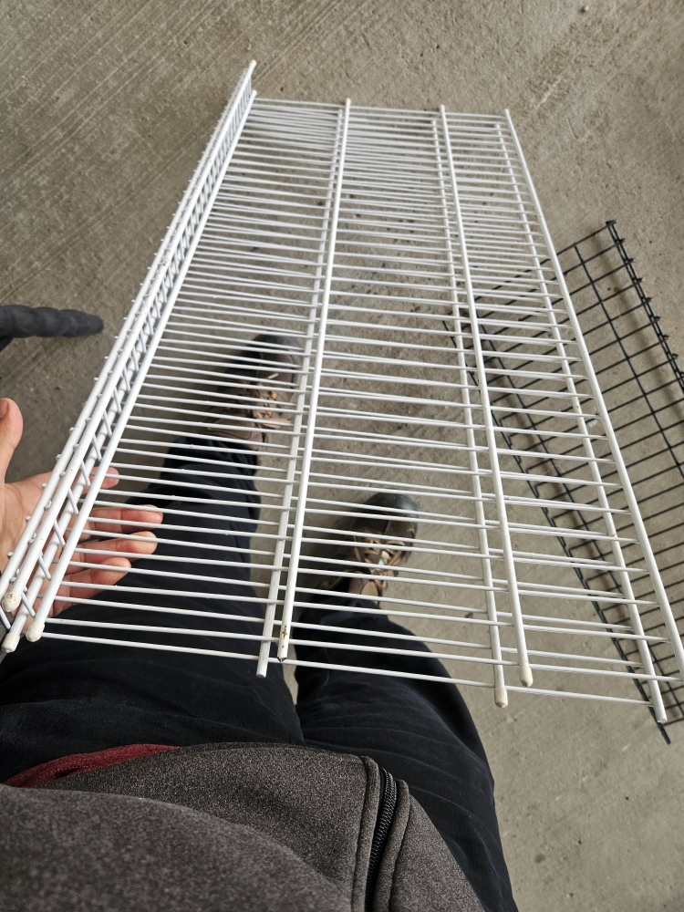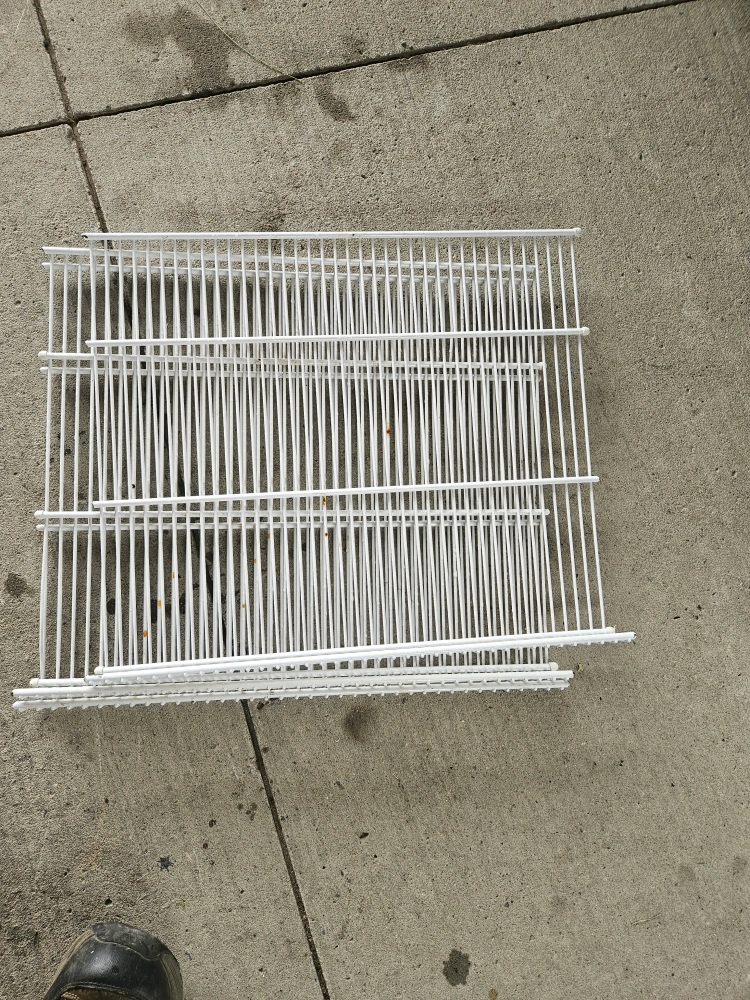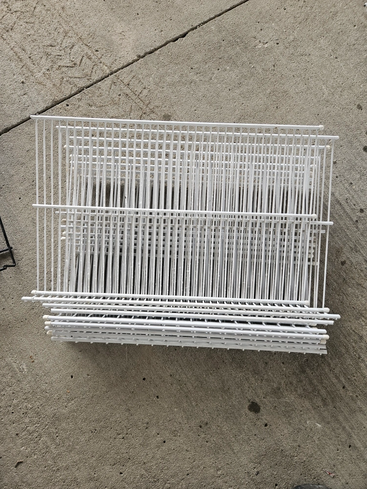 Selling a set of wire shelves, perfect for organizing your space! There are some in white and some in black. They're in good condition and ready for a new home (2) 3f/16in (3)19×16 (3)31×16 (1)44×1f (2)4f×18and half(1)3F×1F(3)16×19(8)19 let me know