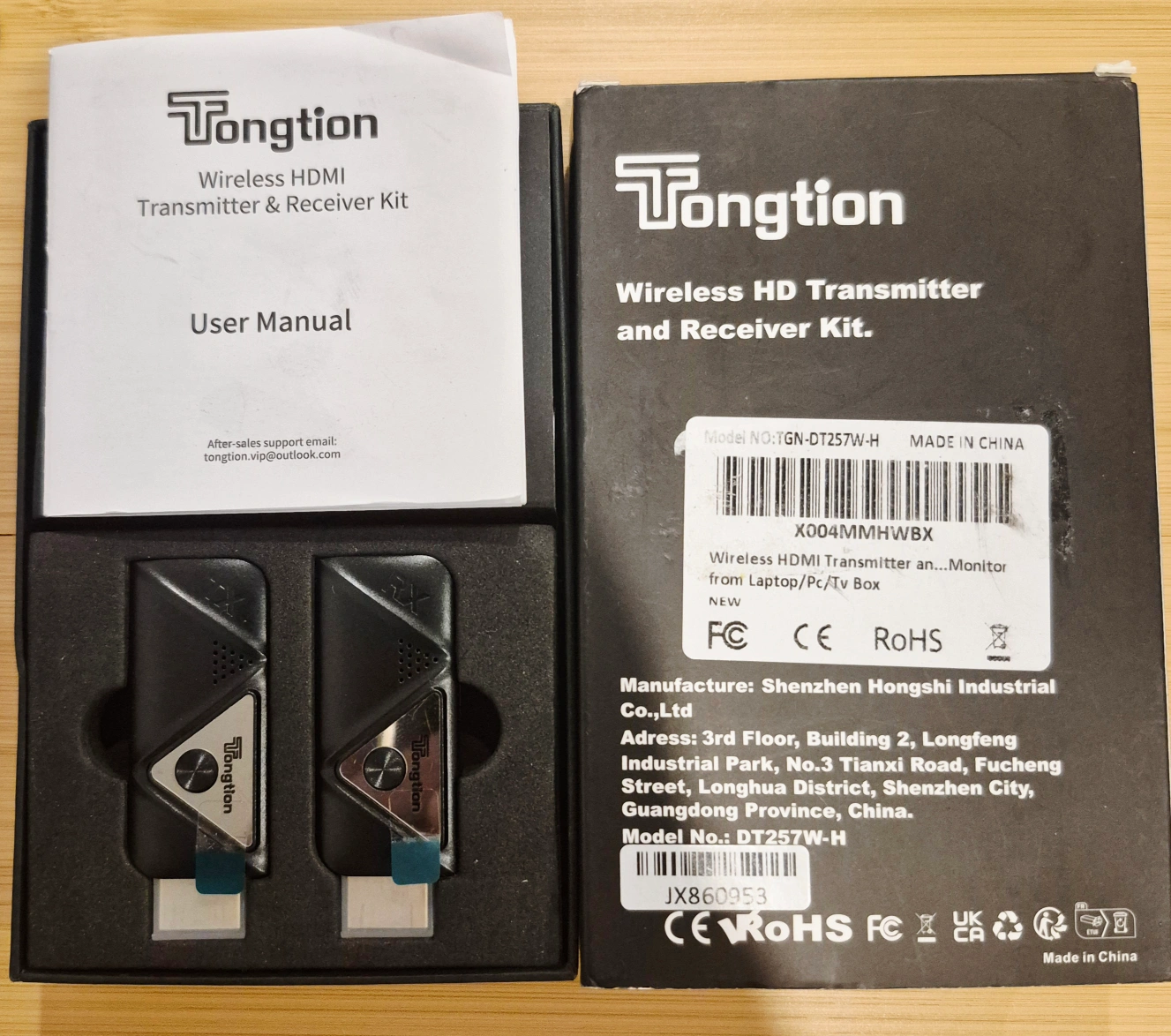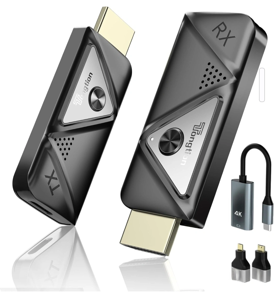 Tongtion Wireless HDMI Transmitter and Receiver Kit. This kit allows you to wirelessly transmit HDMI signals from devices like laptops, PCs, and set-top boxes to monitors or TVs. It's plug-and-play, so no need for Bluetooth, Wi-Fi, or apps. Say goodbye to the hassle of HDMI cables and extension cords, keeping everything clean and tidy!