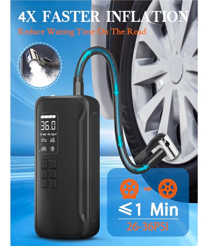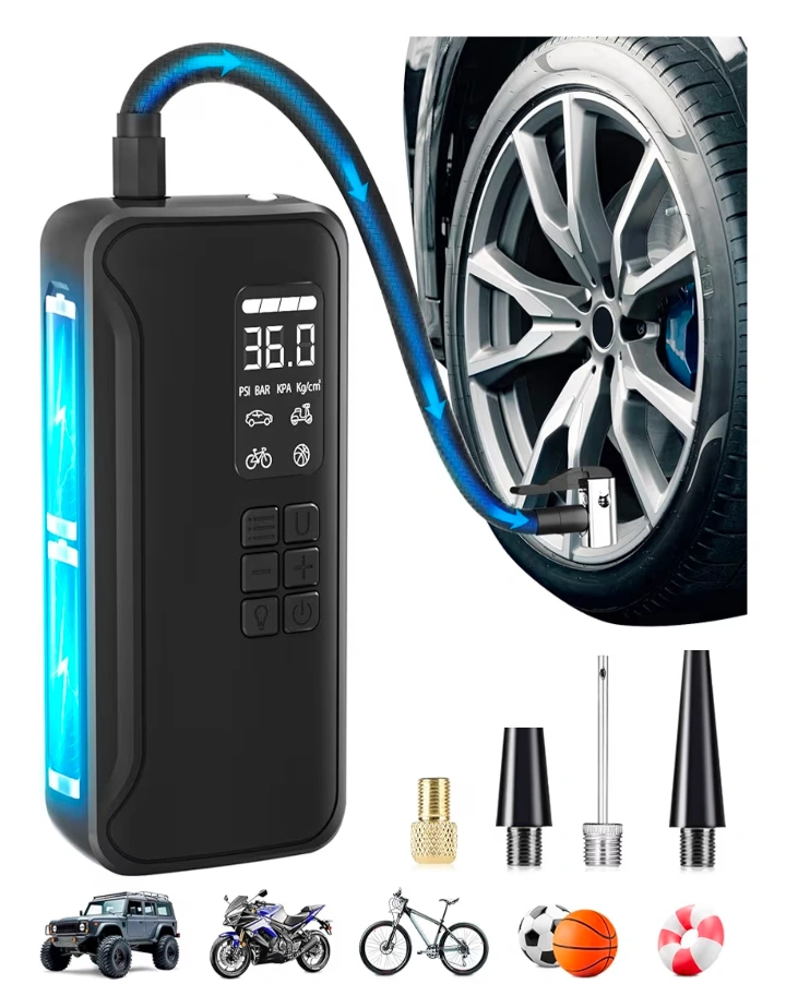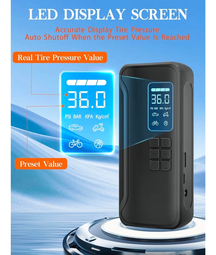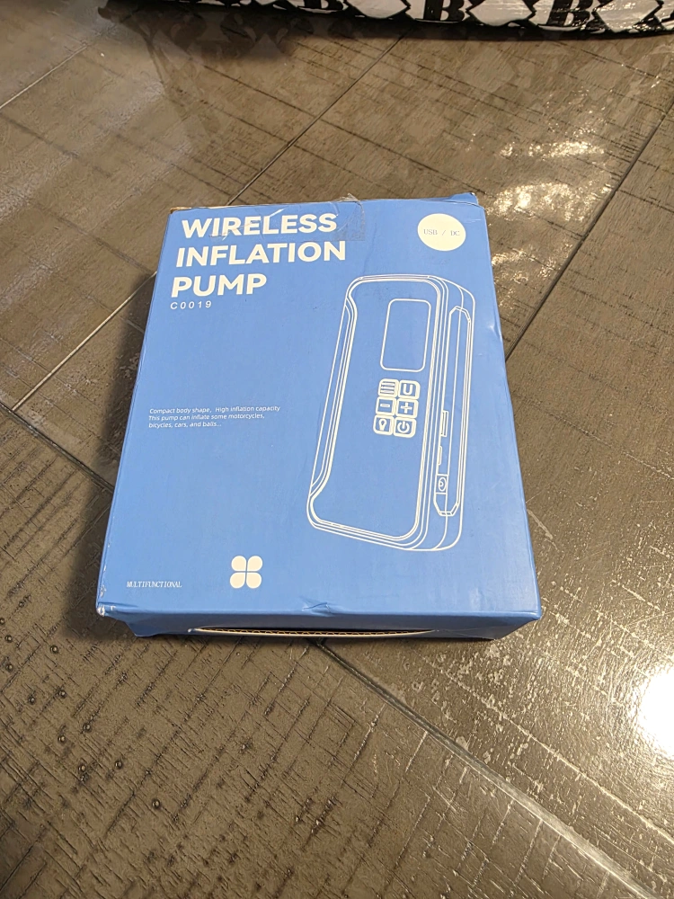 Selling a brand new Wireless Inflation Pump, model C0019. It comes in its original box. This handy pump is multifunctional and can be used for cars, motorcycles, bicycles, and balls. It features an accurate LED display screen to show tire pressure and has an auto shutoff function. It's also designed for 4X faster inflation, saving you time on the road!