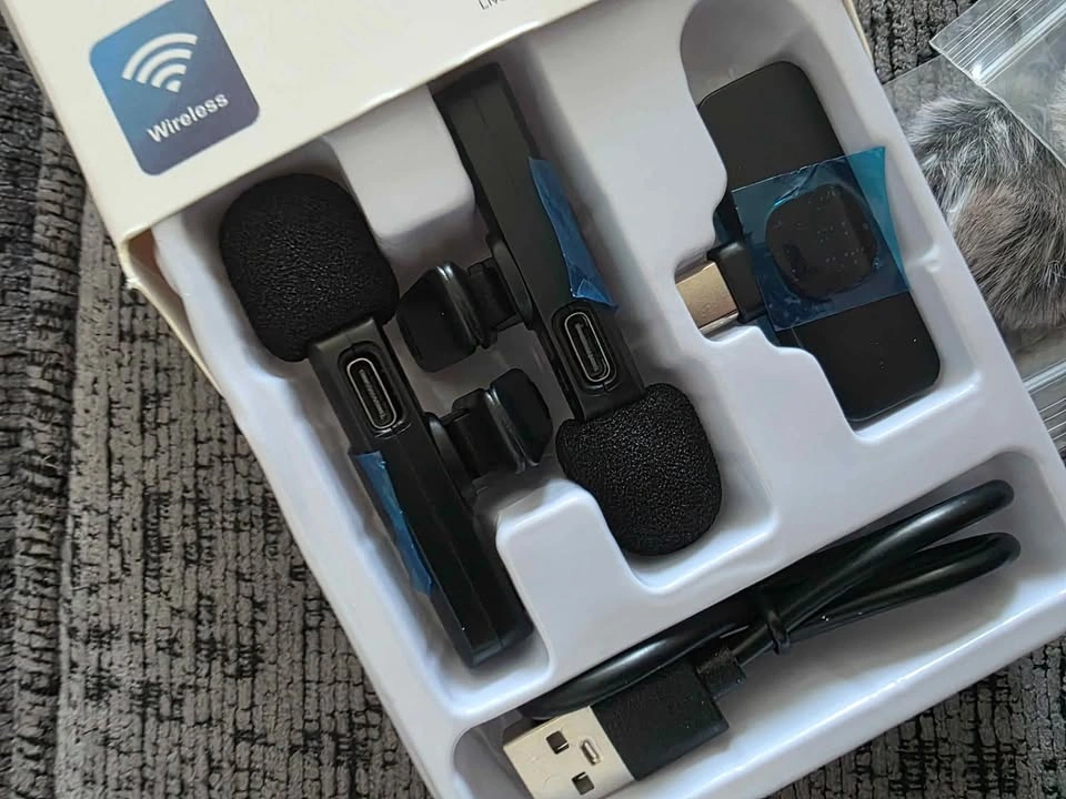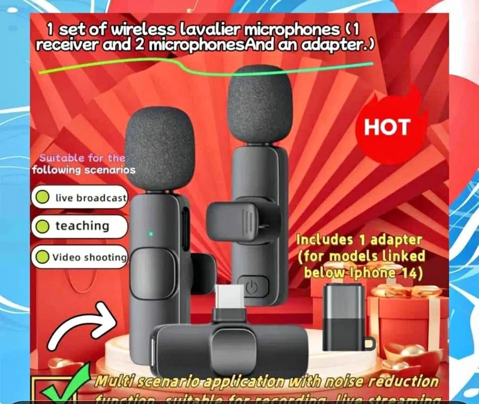 93Wireless Mic for Cellphone. This is a 2 mic with a type c support adaptor Wireless Lavalier MicrophoneWireless Mic for PhoneDual Wireless Mic for iPhone/Android