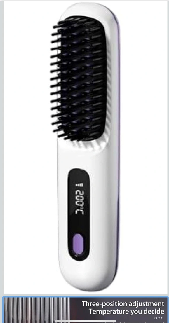 10Check out this wireless portable hair straightening comb! It has a three-position temperature adjustment so you can decide the best heat for your hair type. - 160°C: Suitable for fine and limp hair - 180°C: Suitable for normal hair - 200°C: Suitable for coarse and hard hair It's lightweight with a product net weight of 218g and a package weight of 320g. It's also 4.3cm/1.69in wide and 19.5cm/7.67in tall