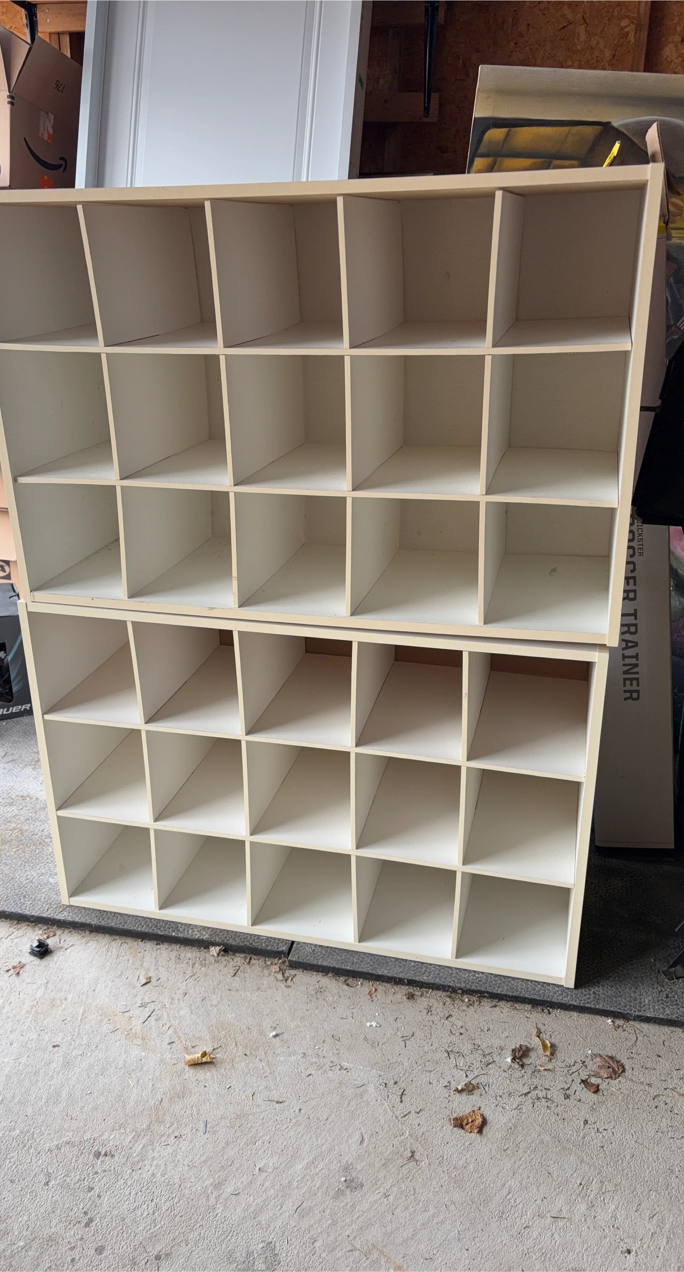 These are two storage shelf with 15 individual cubbies each. It's great for organizing shoes, books, or other household items.