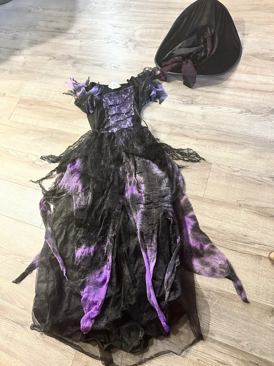 39Selling a witch costume, complete with a matching hat! The dress features a combination of black and purple, perfect for Halloween or dress-up. It's in great condition and ready for a new home! Size 12-14